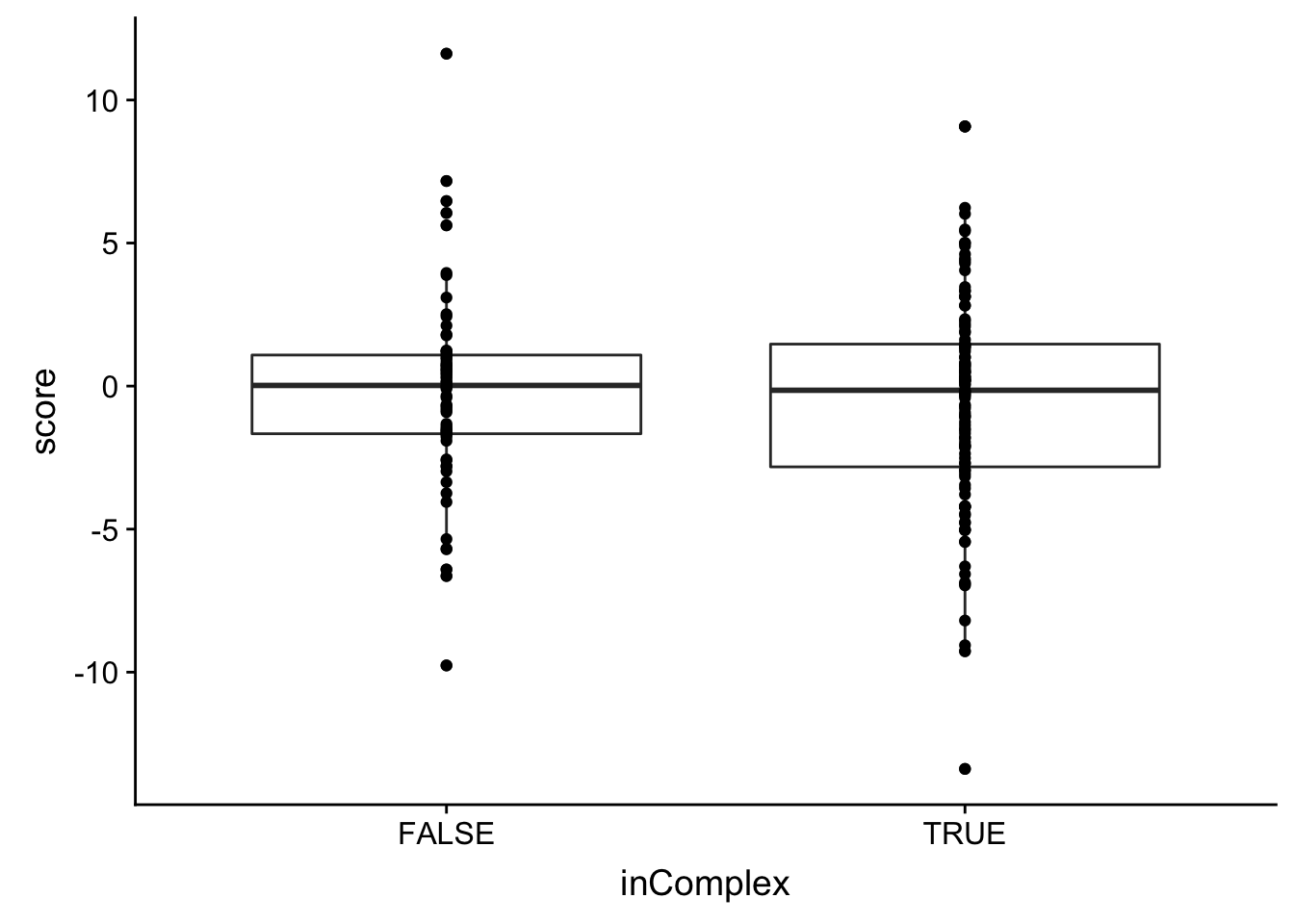 There’s no significant association between the buffering effect and whether the protein is in complex or not.