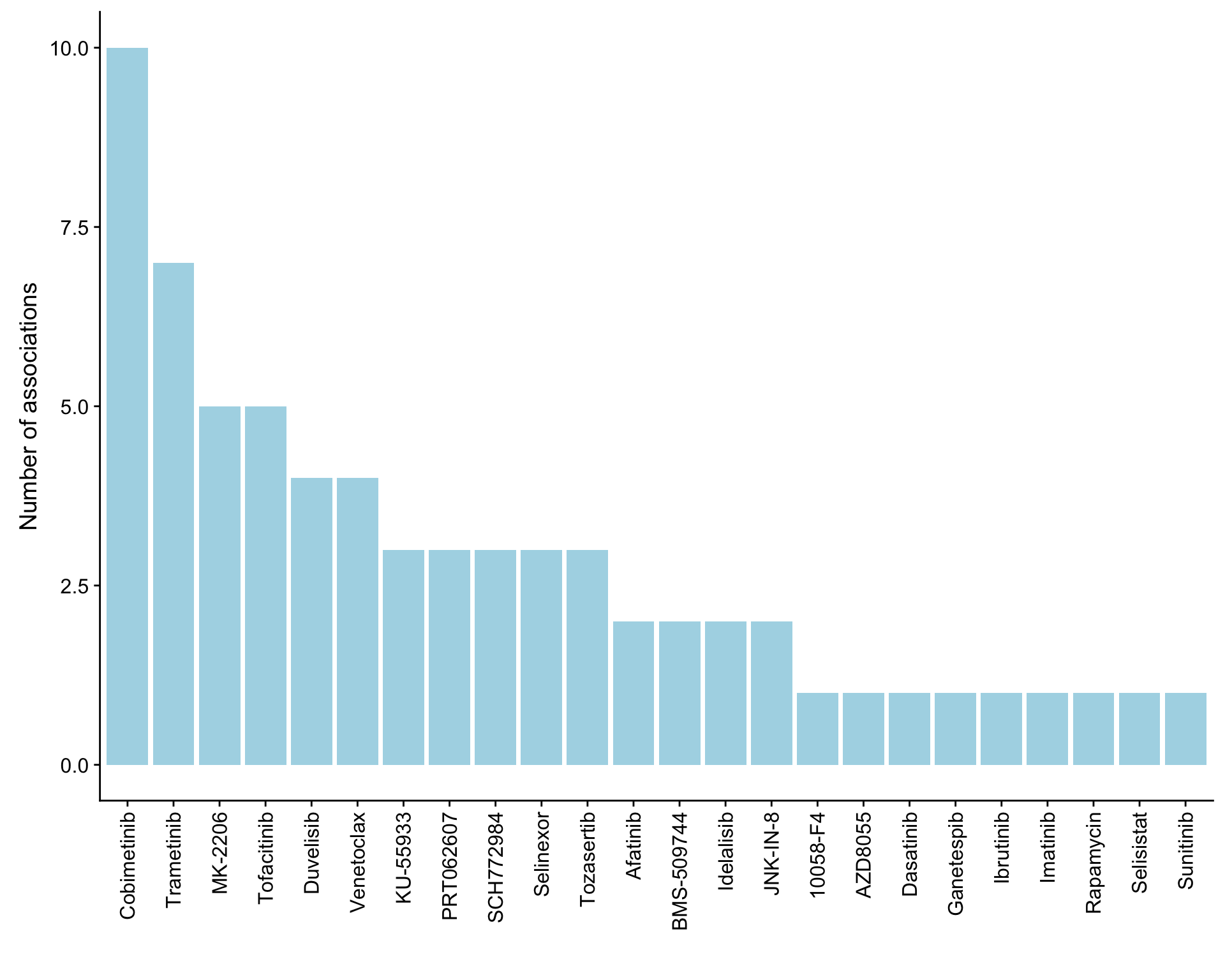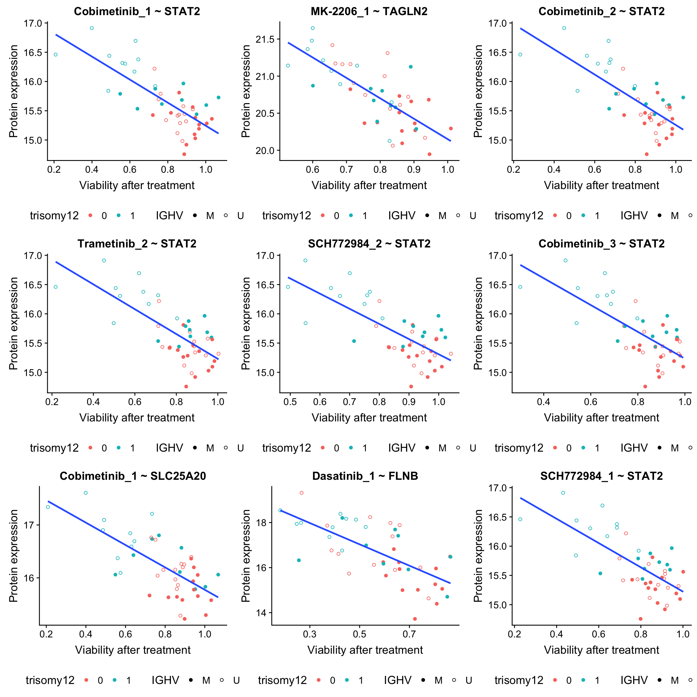 In general, if the proteins show high correlation with drug response in uni-variate test, they will be selected here.