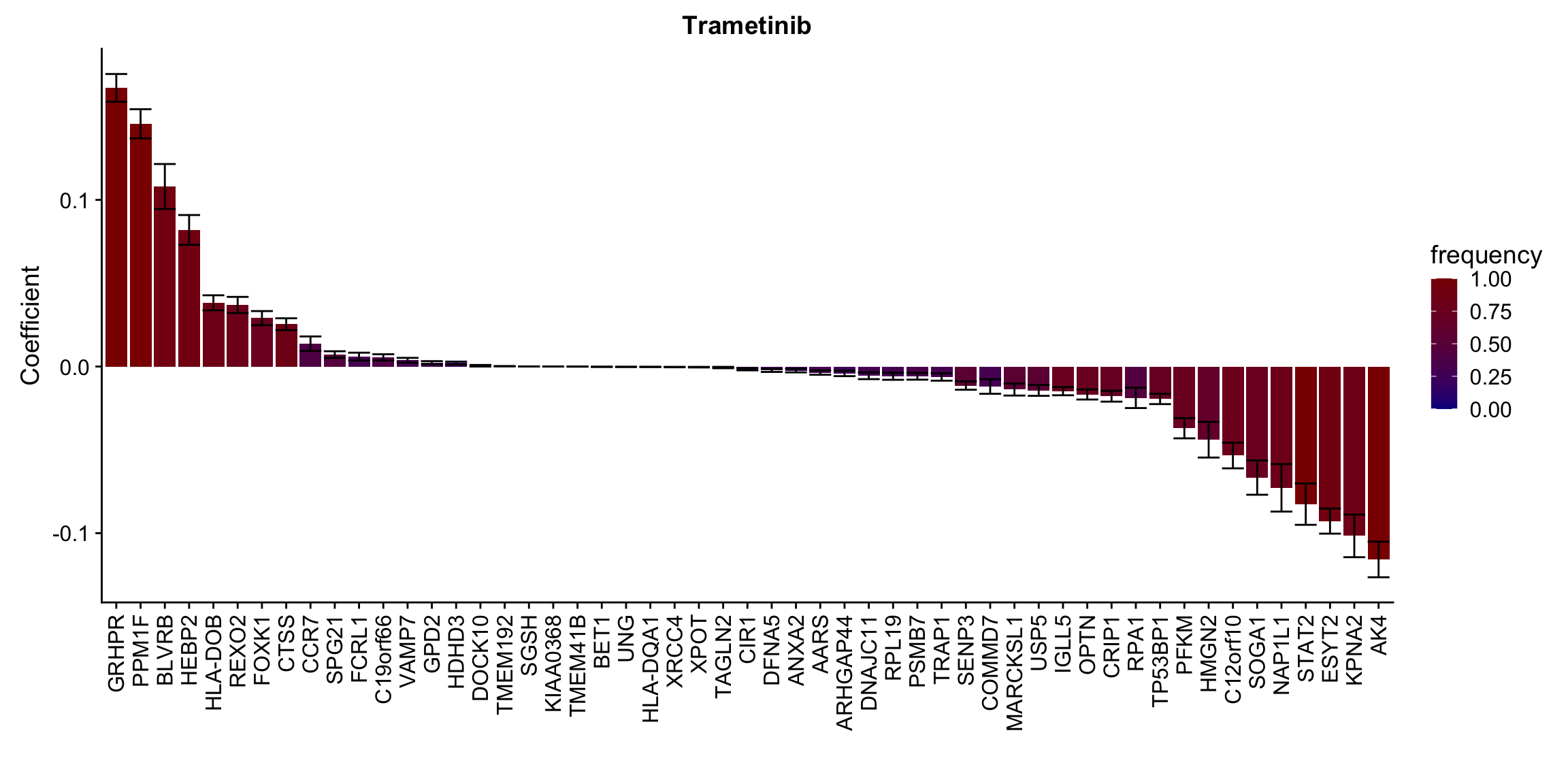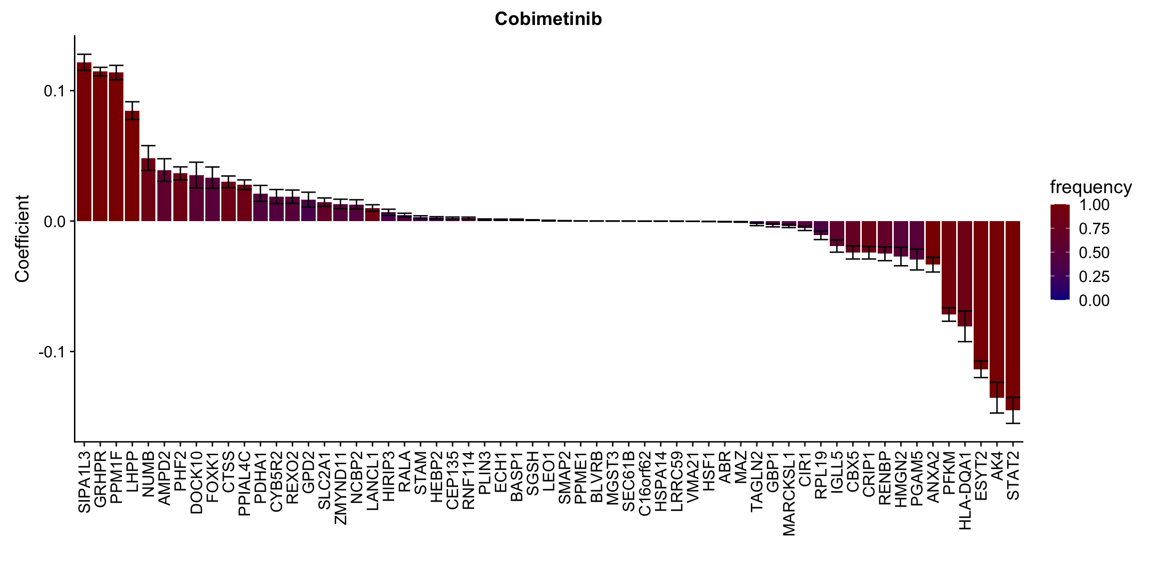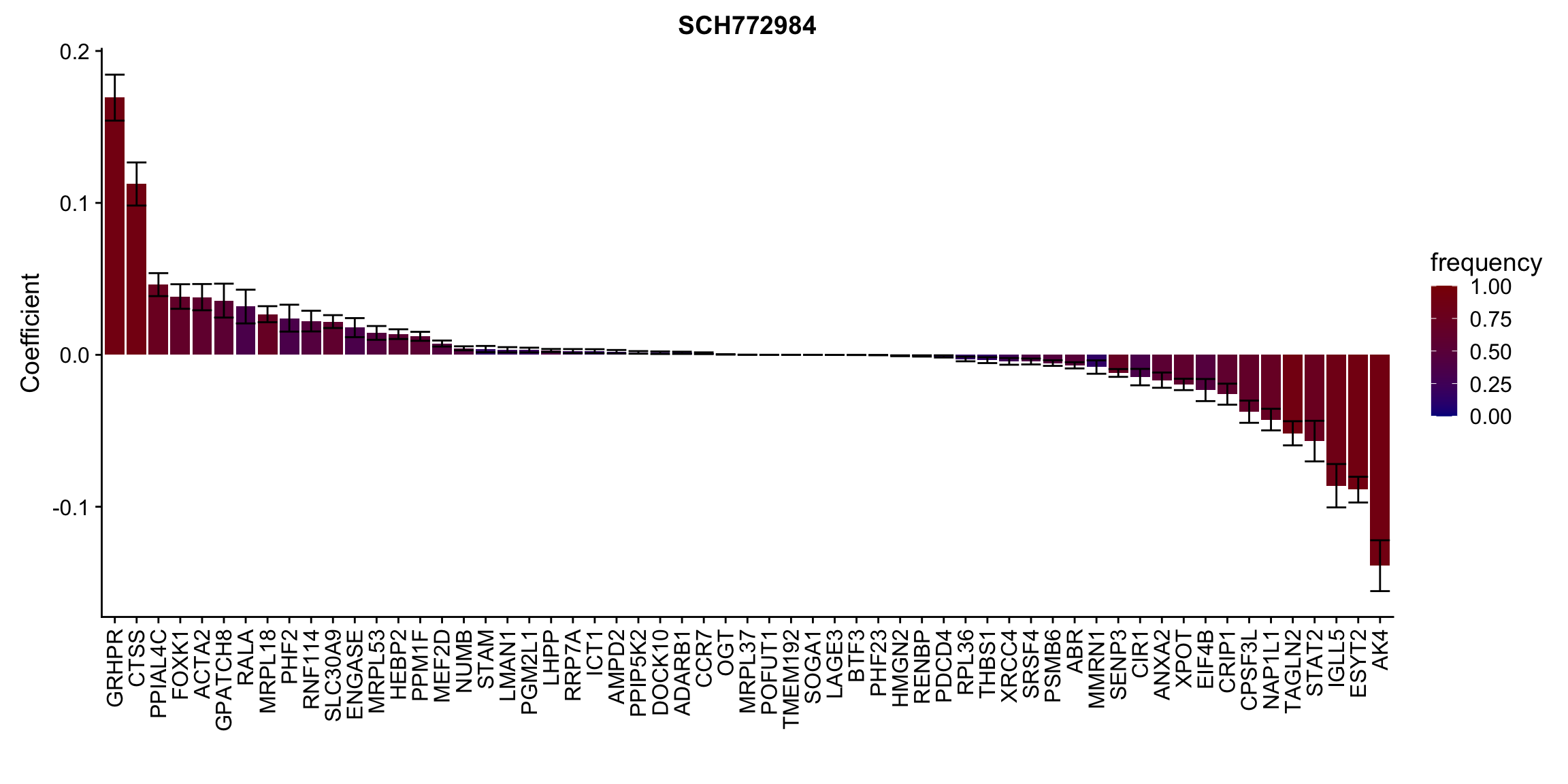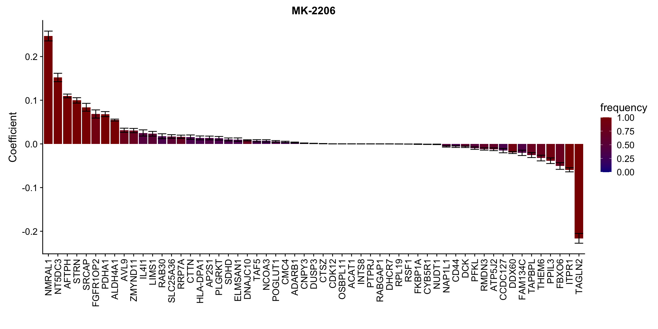 ggplot(plotTab, aes(x=symbol,y=meanCoef,fill = freq)) +
