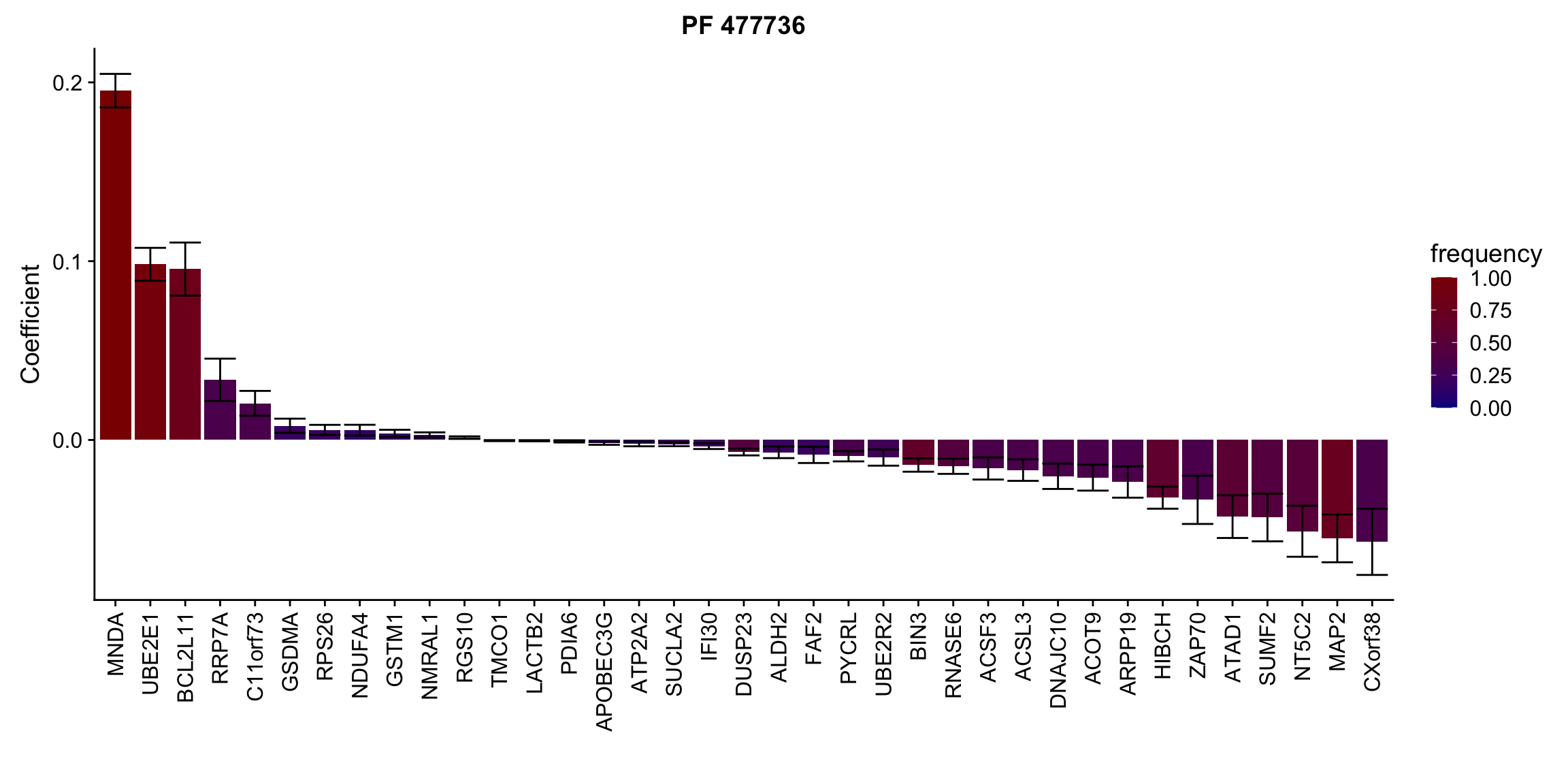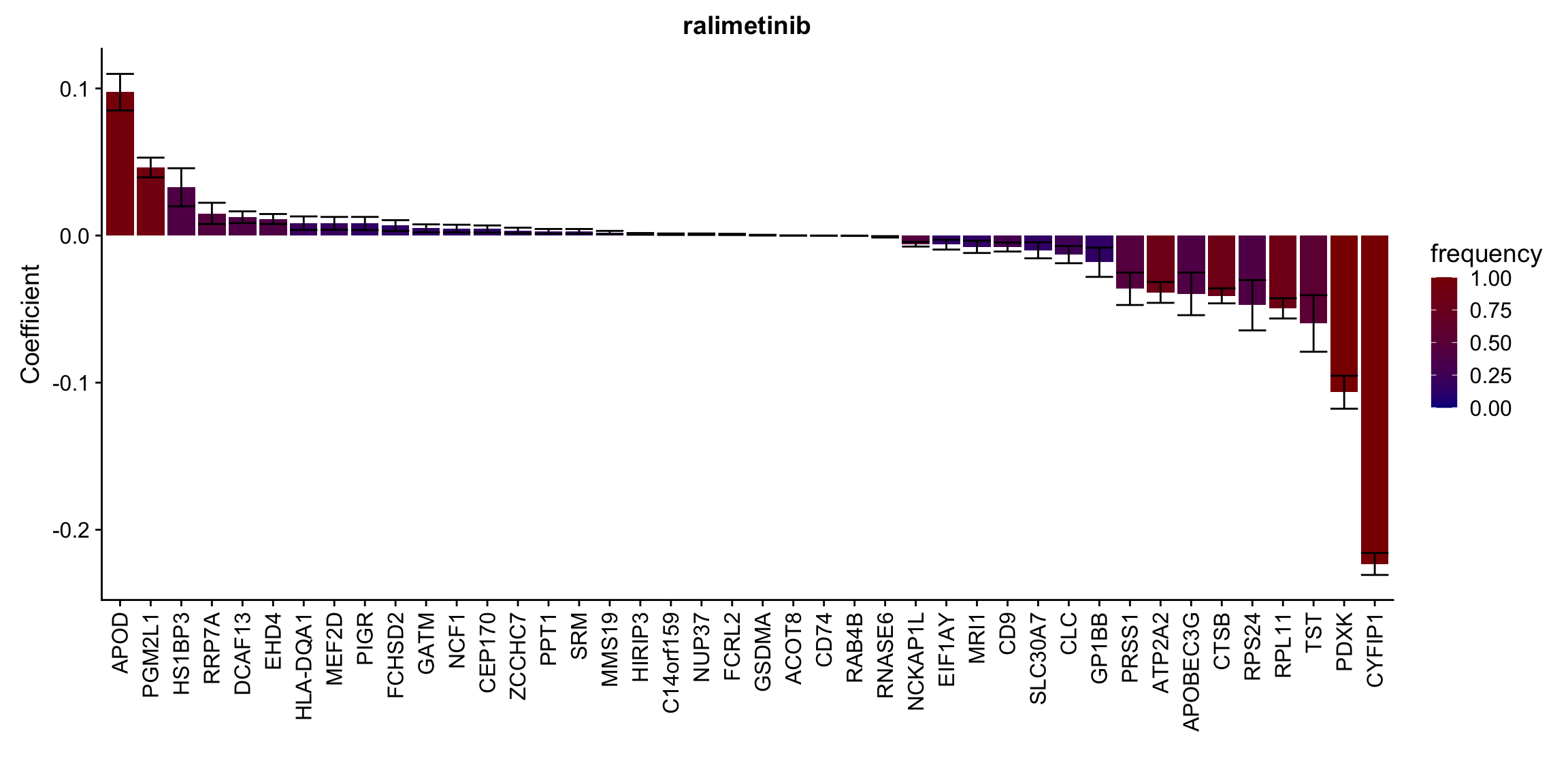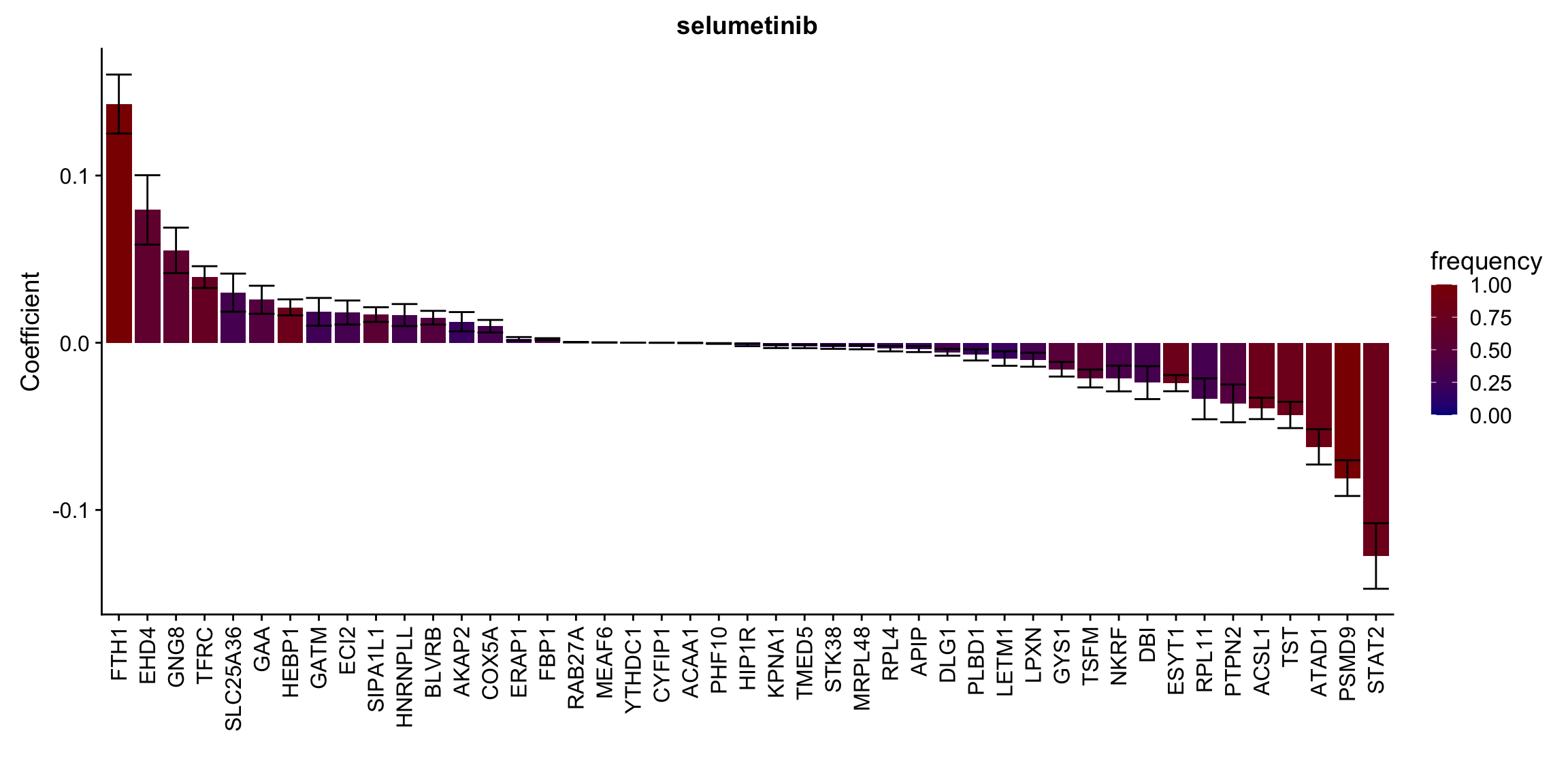 ggplot(plotTab, aes(x=symbol,y=meanCoef,fill = freq)) +