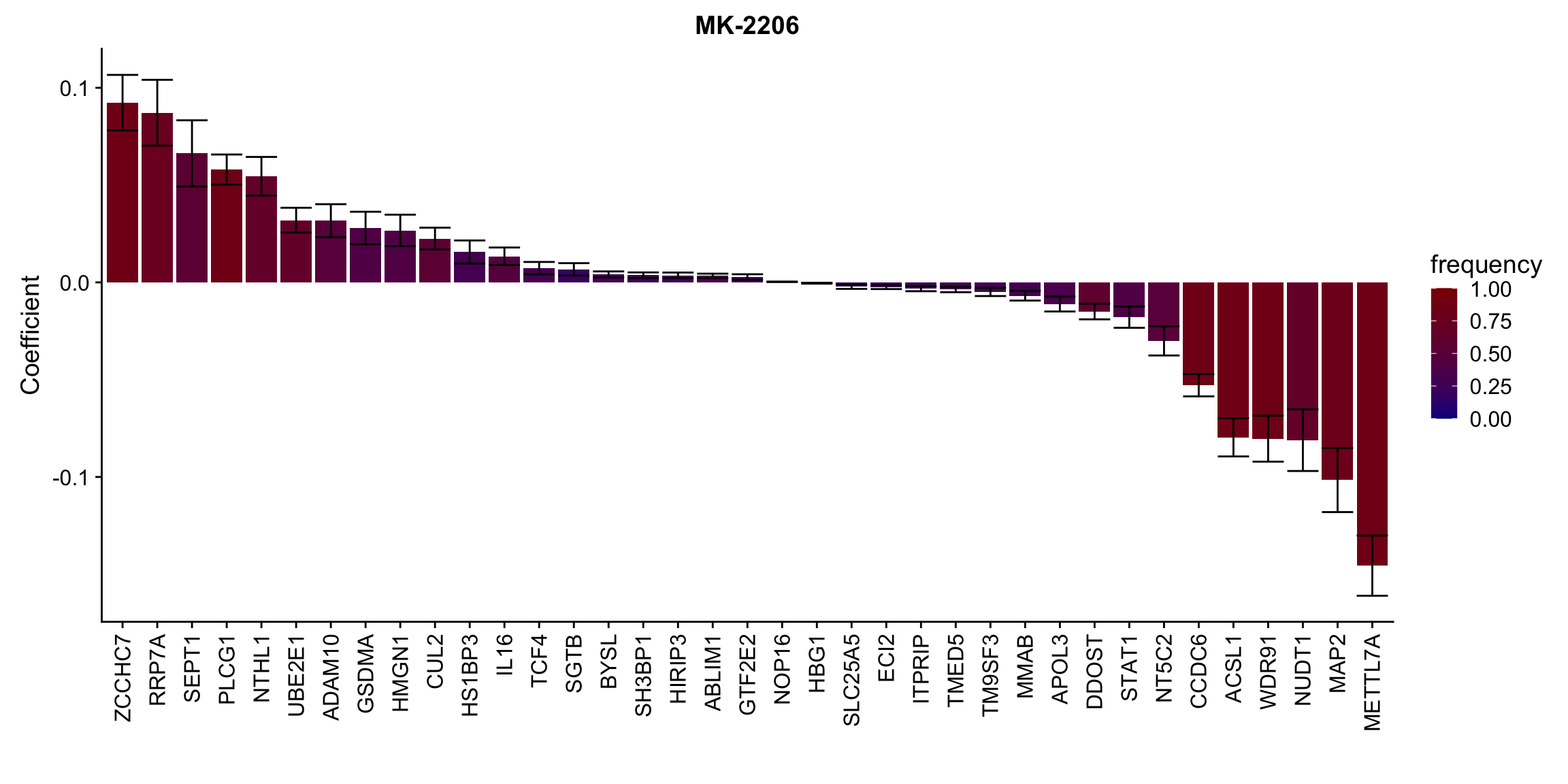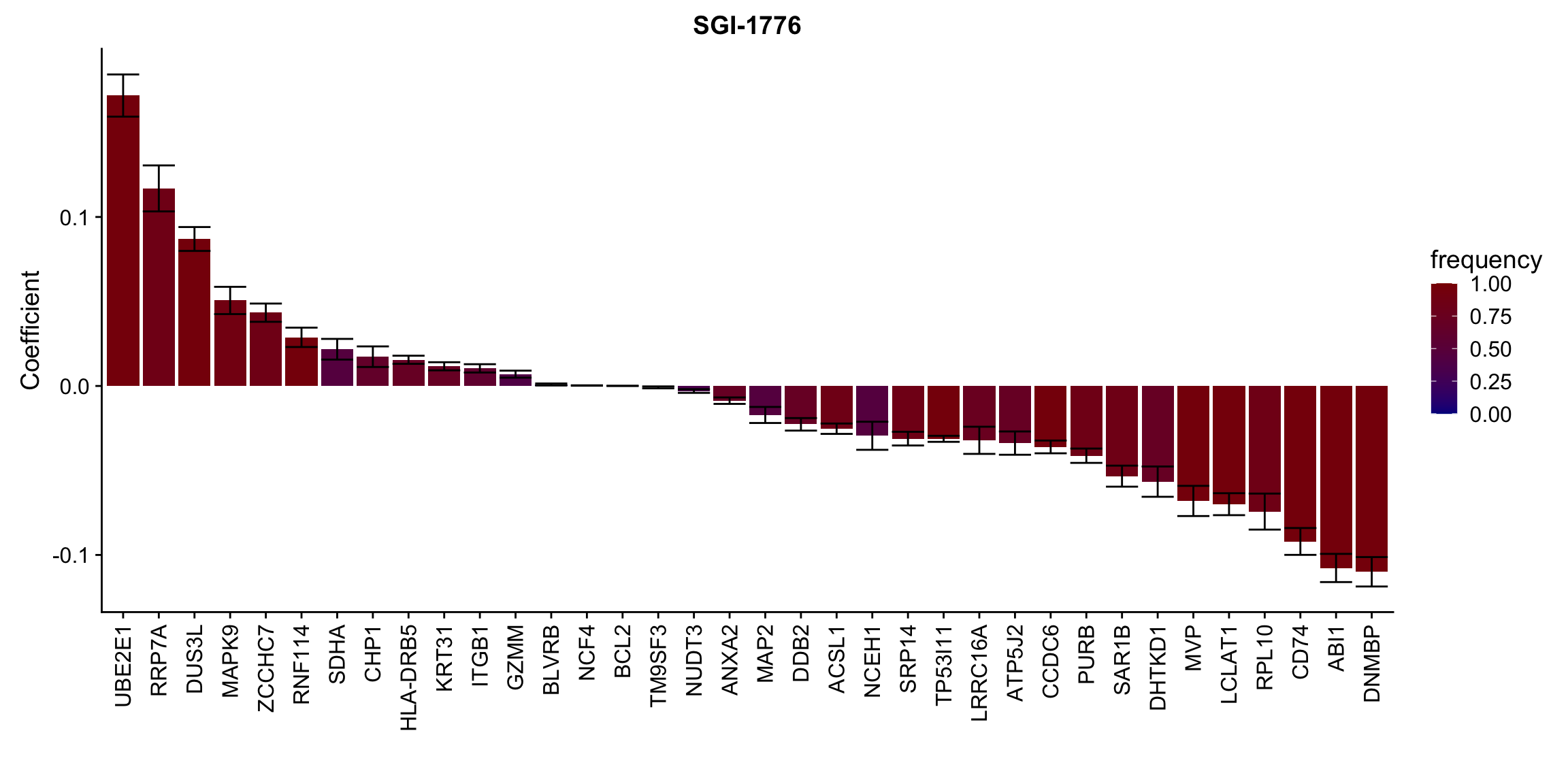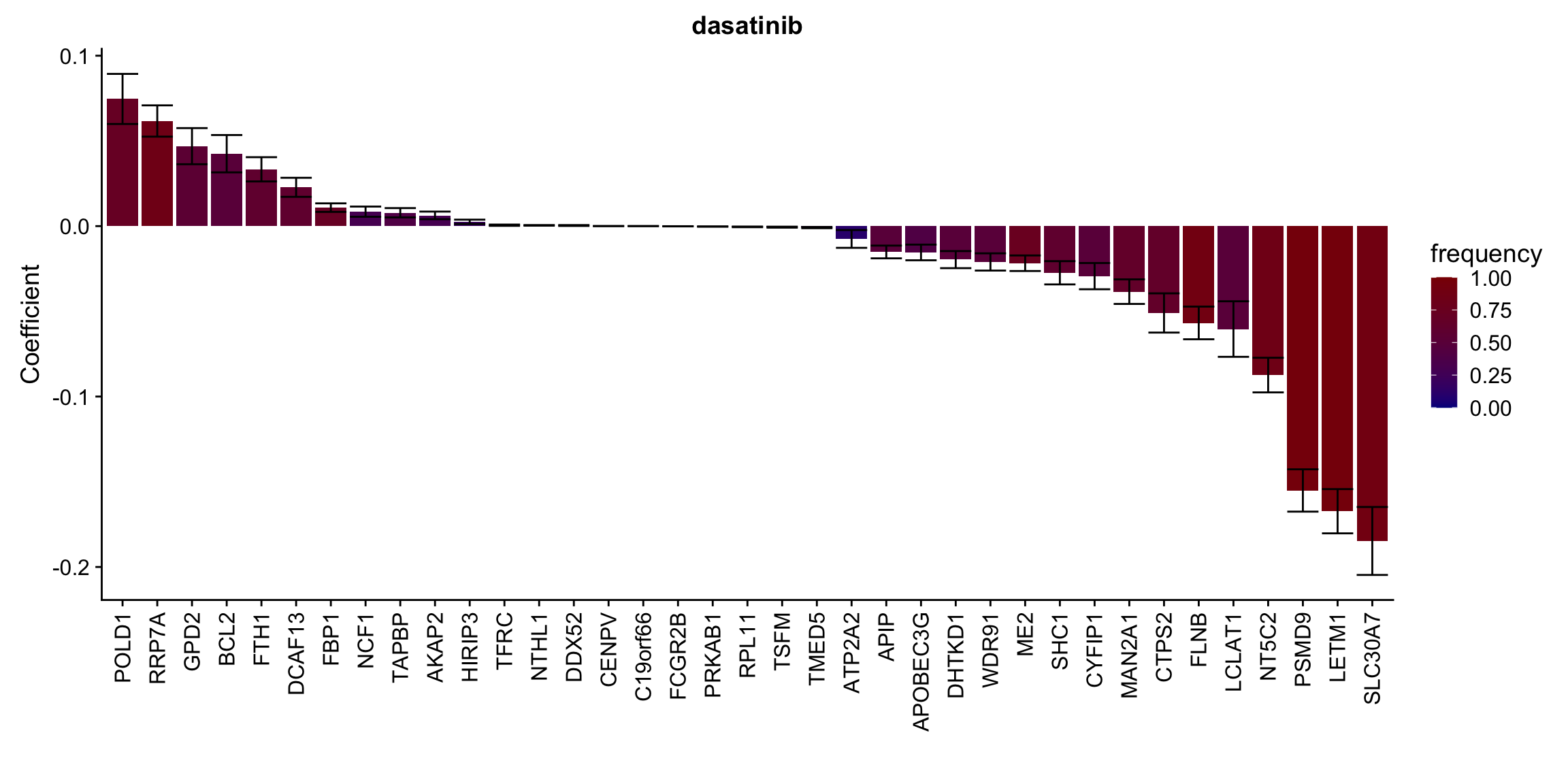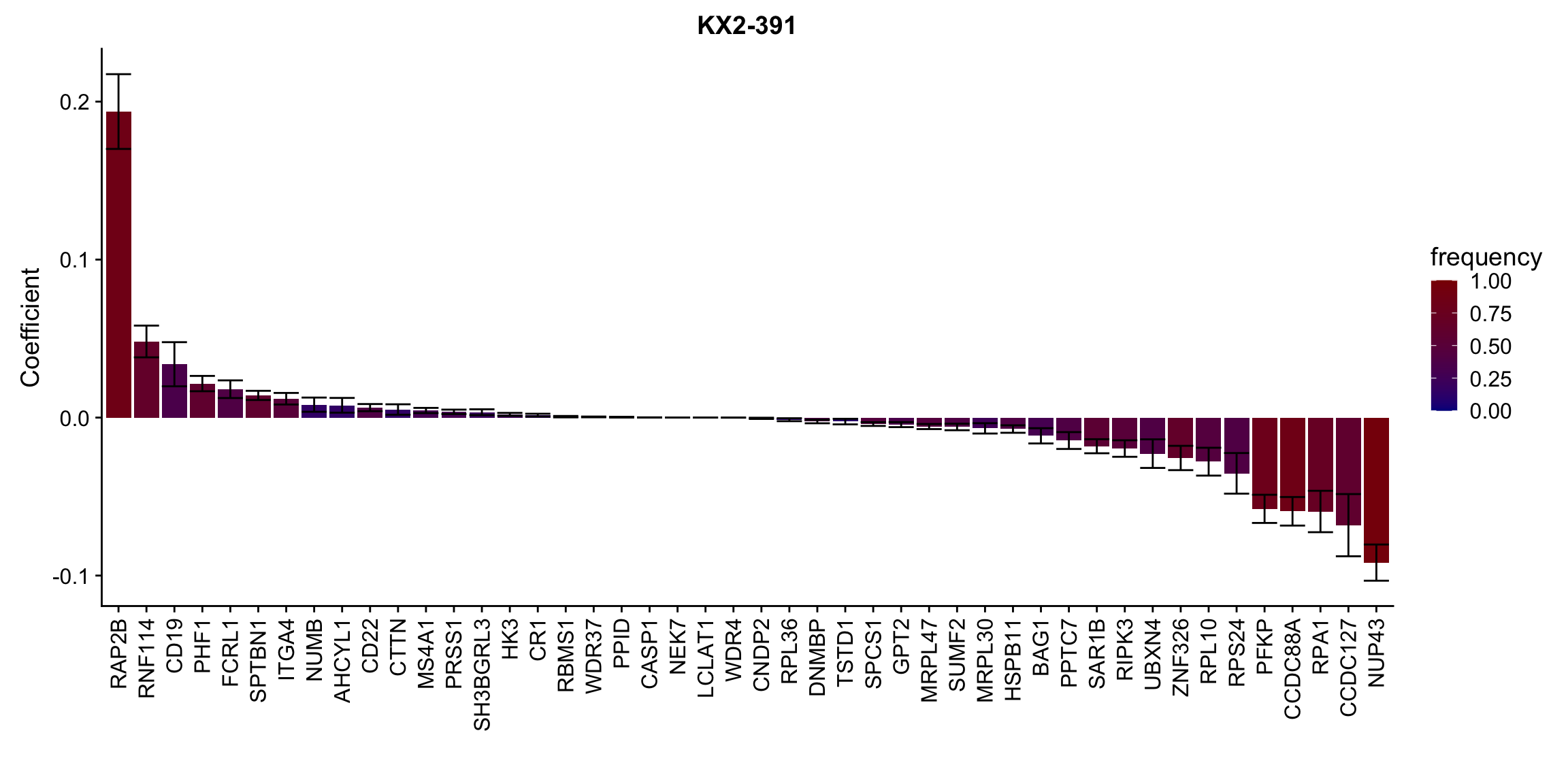 ggplot(plotTab, aes(x=symbol,y=meanCoef,fill = freq)) +