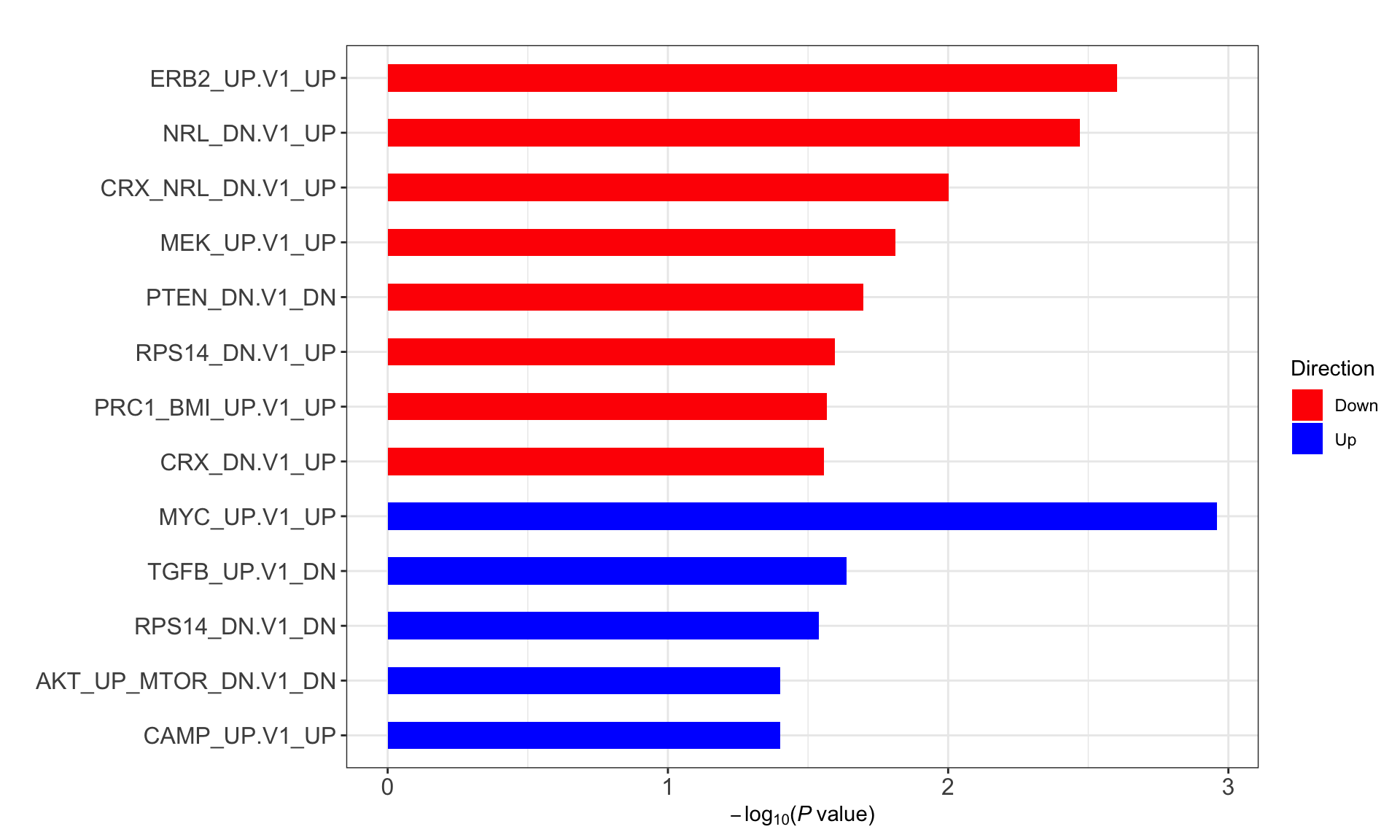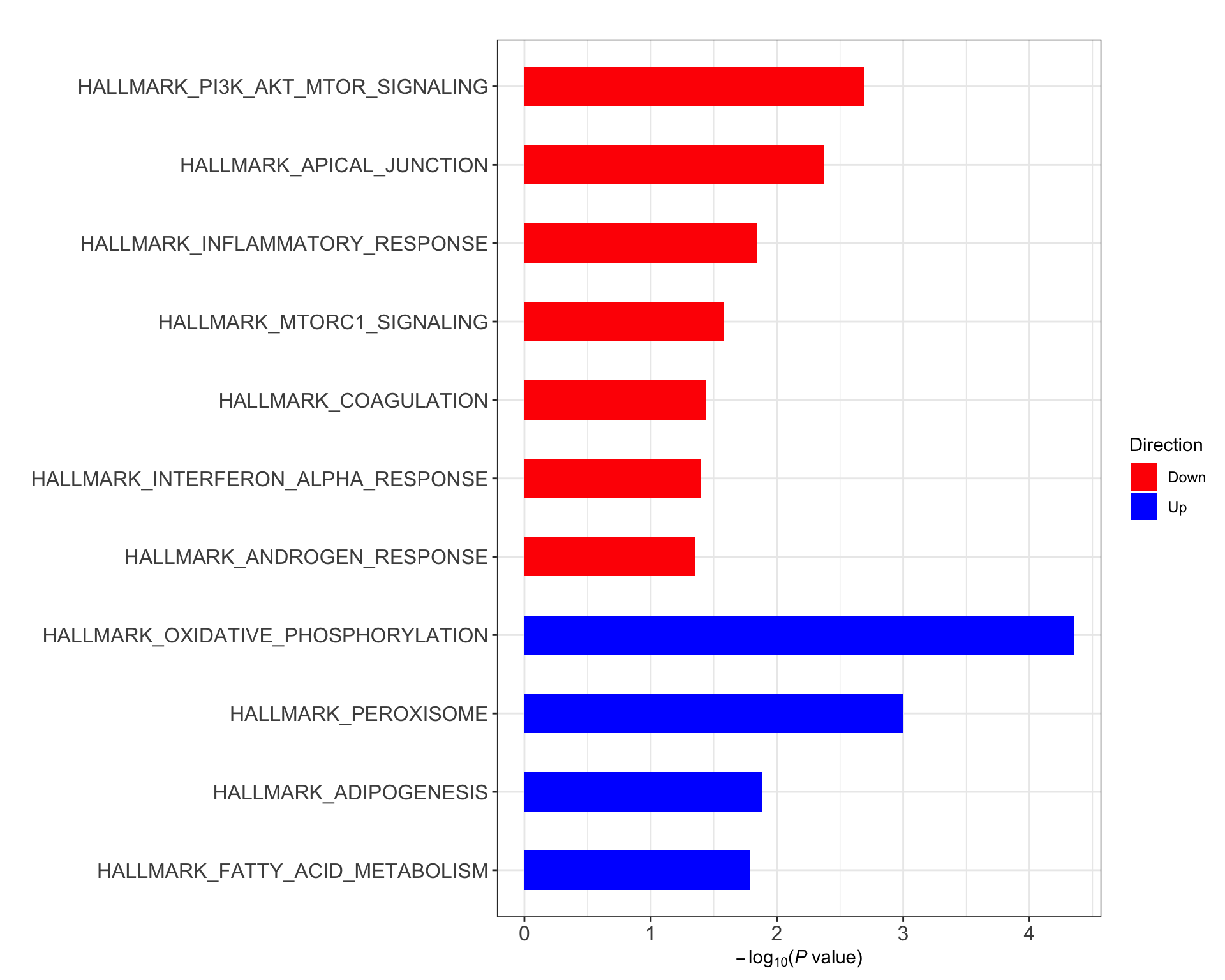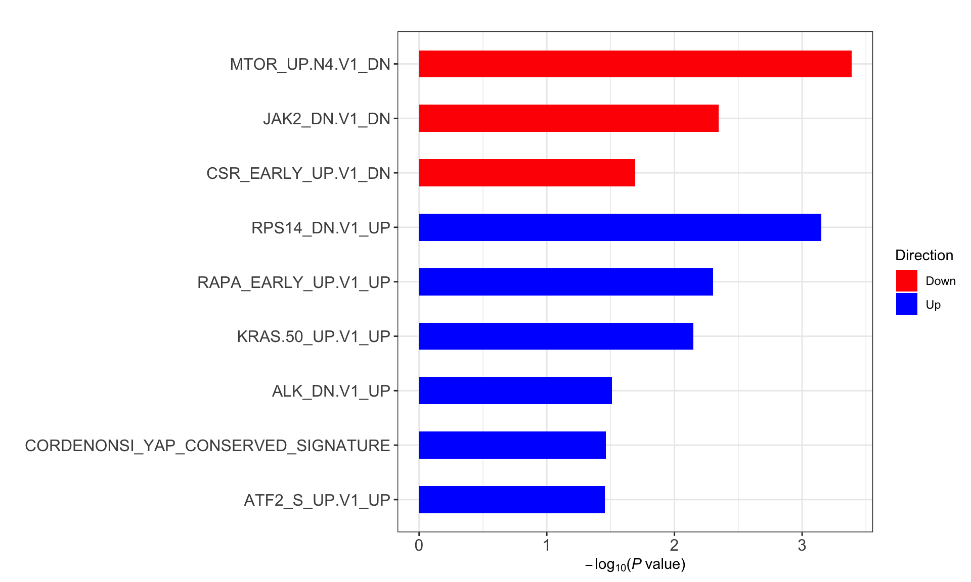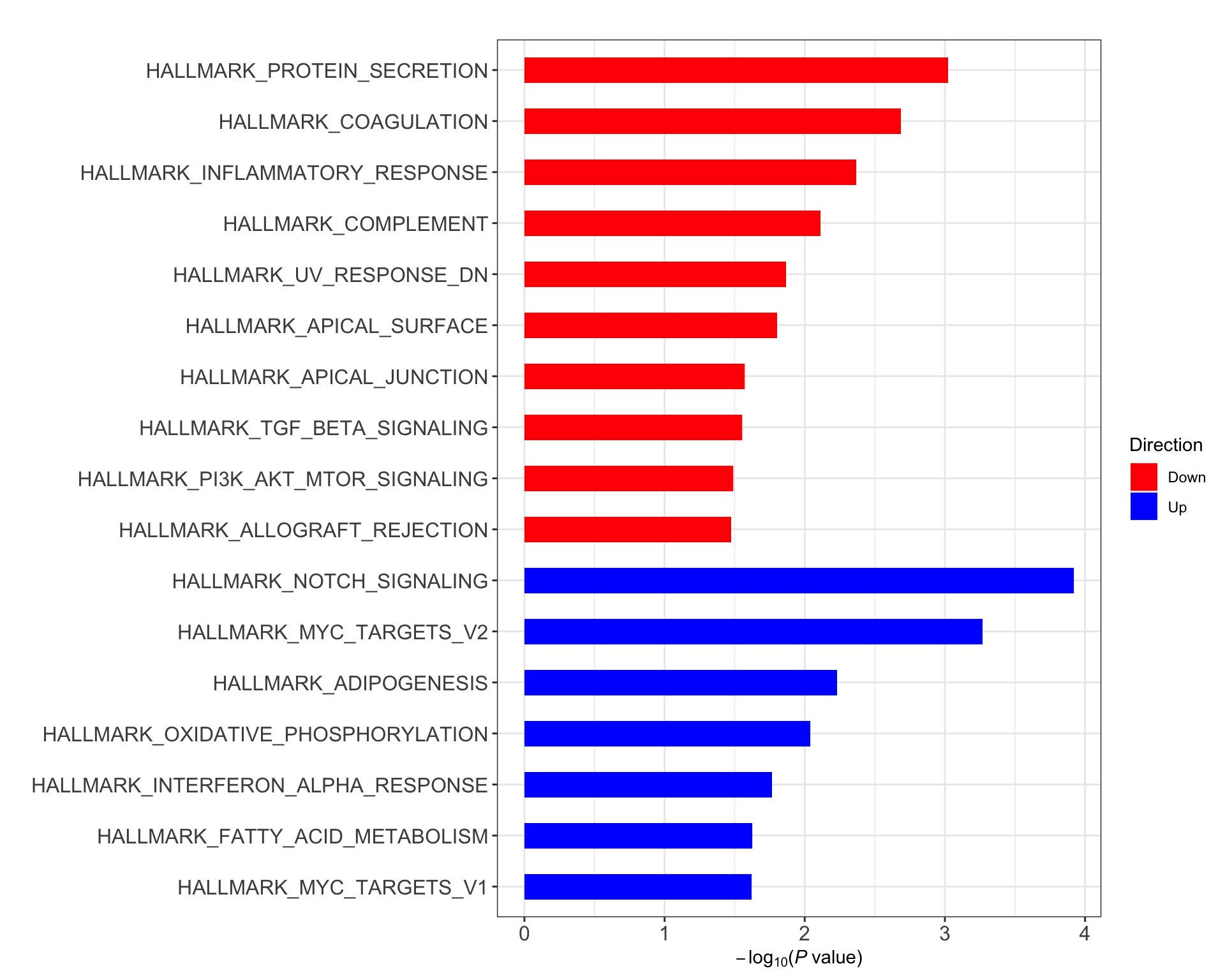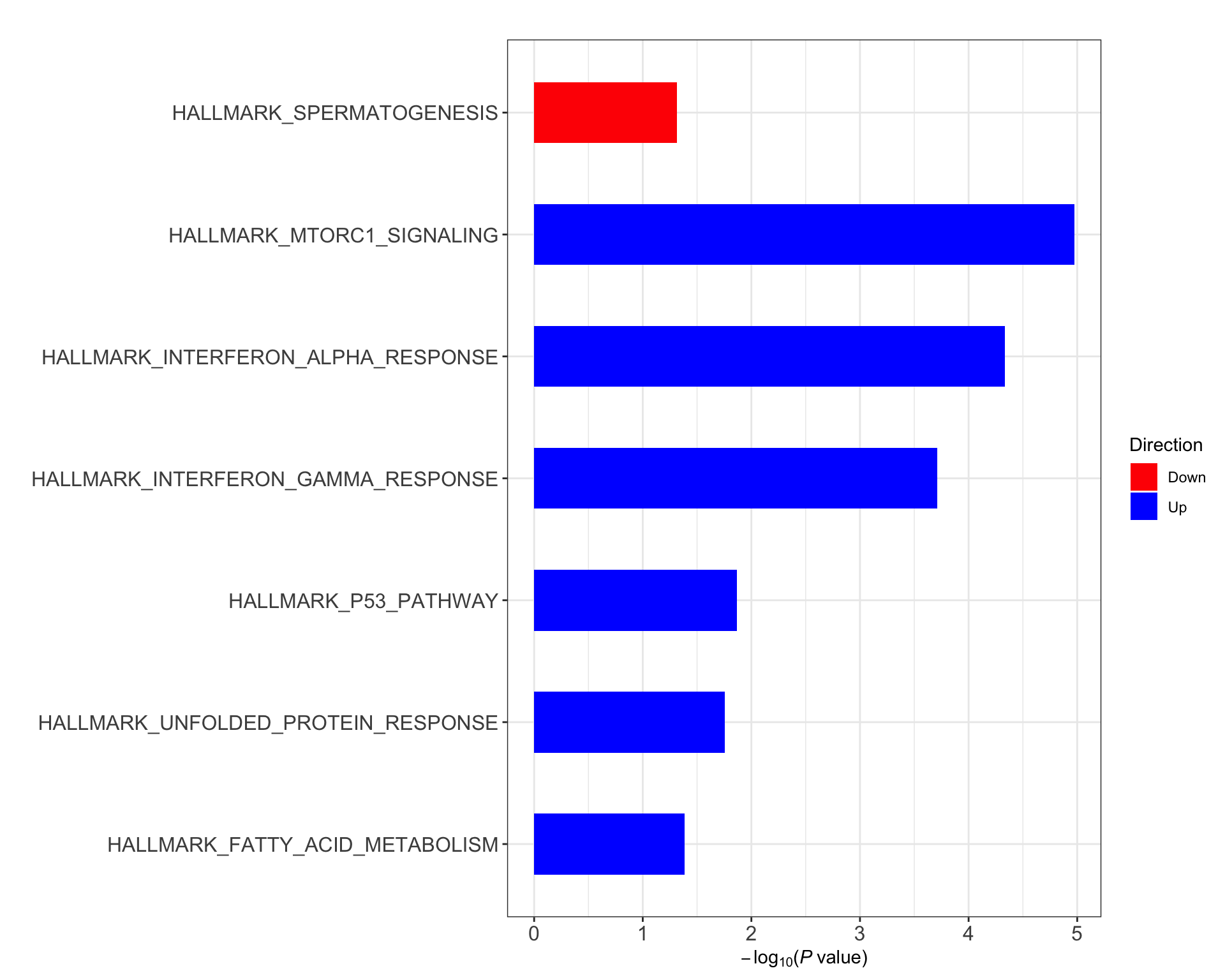 res <- runCamera(proMat, designMat, gmts$C6, id = rowData(protCLL[rownames(proMat),])$hgnc_symbol)