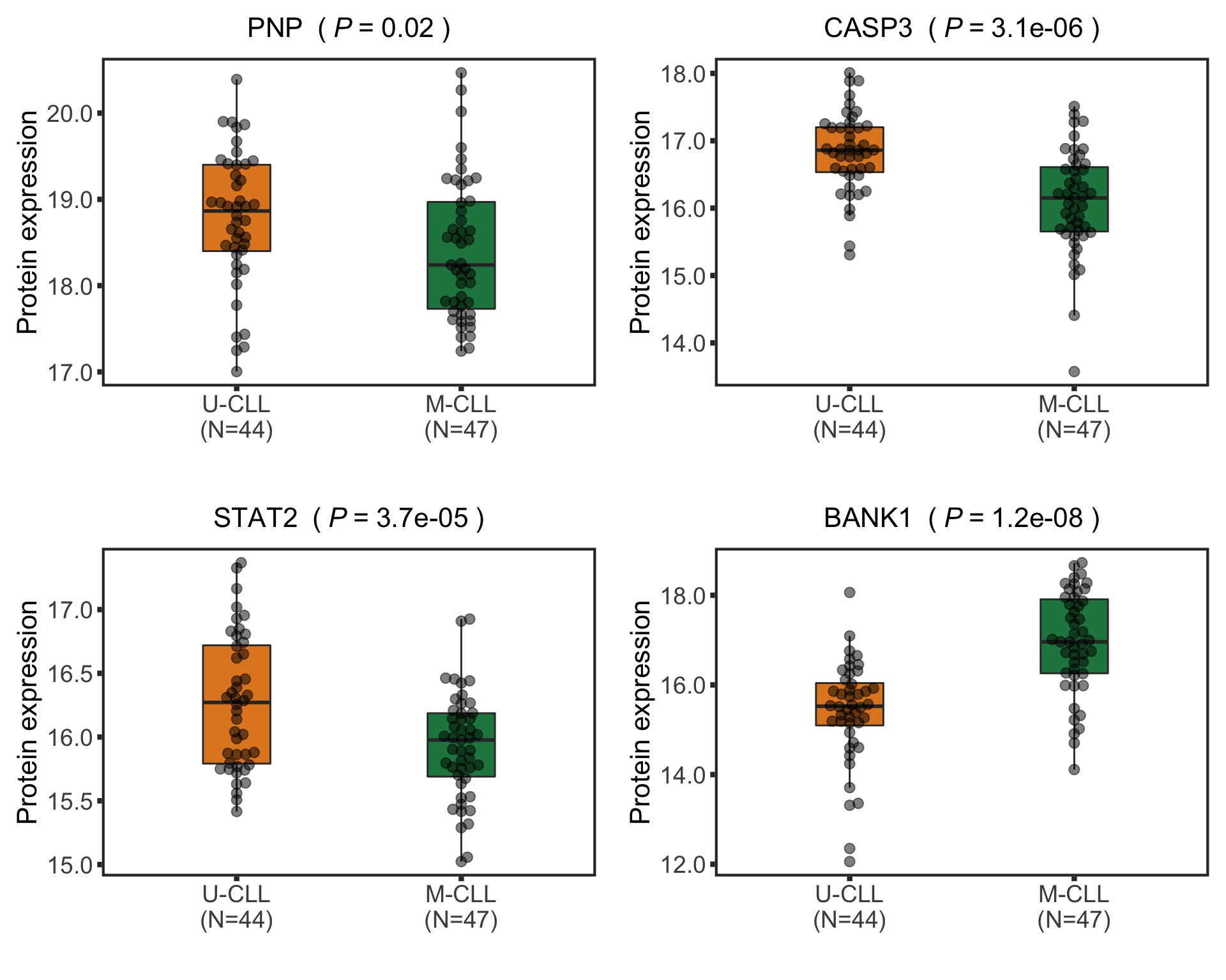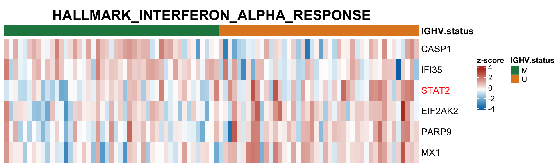 Differential RNA/protein expression analysis related to IGHV