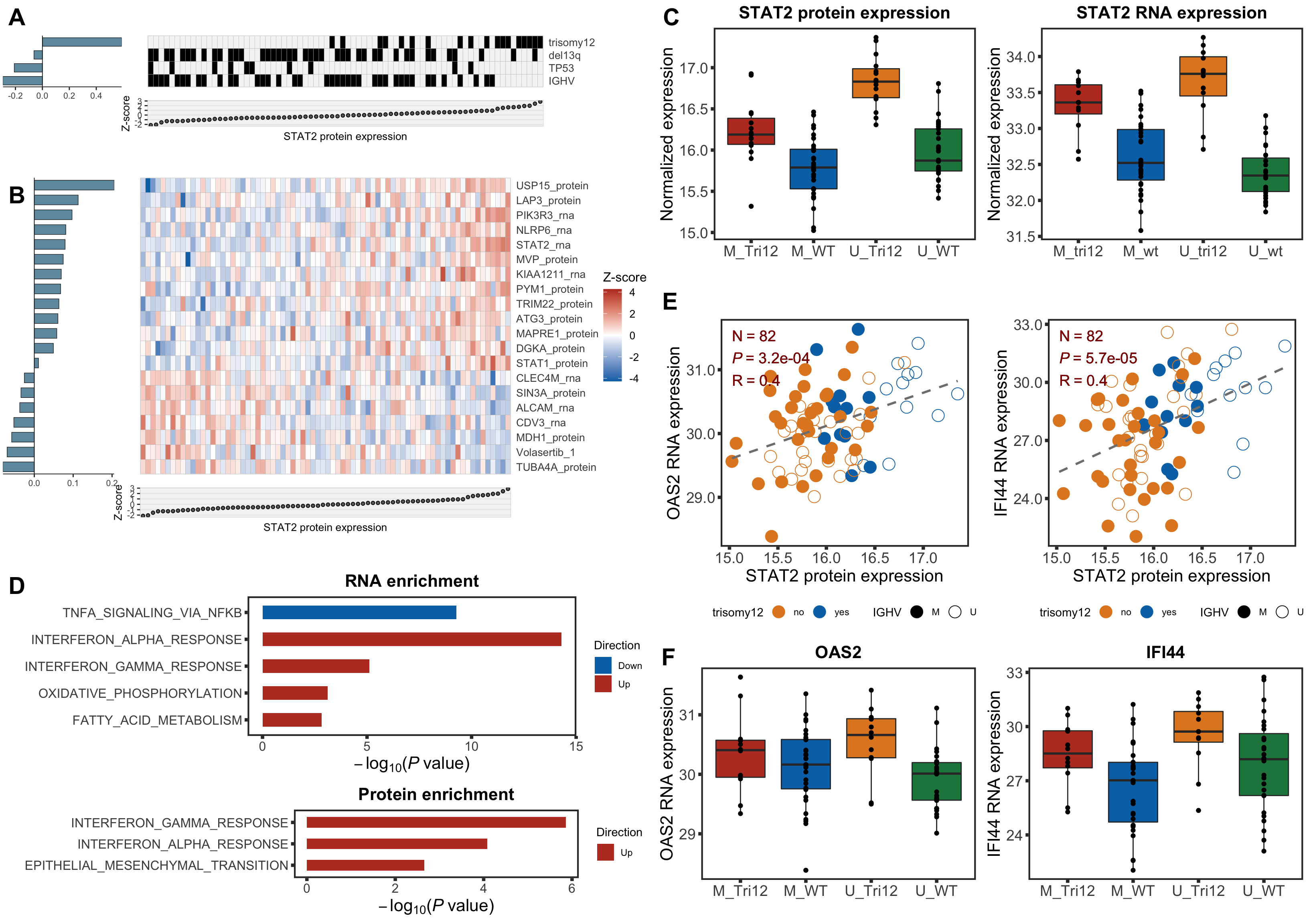 Pathway enrichment for RNA expressions correlated with STAT2 protein expression