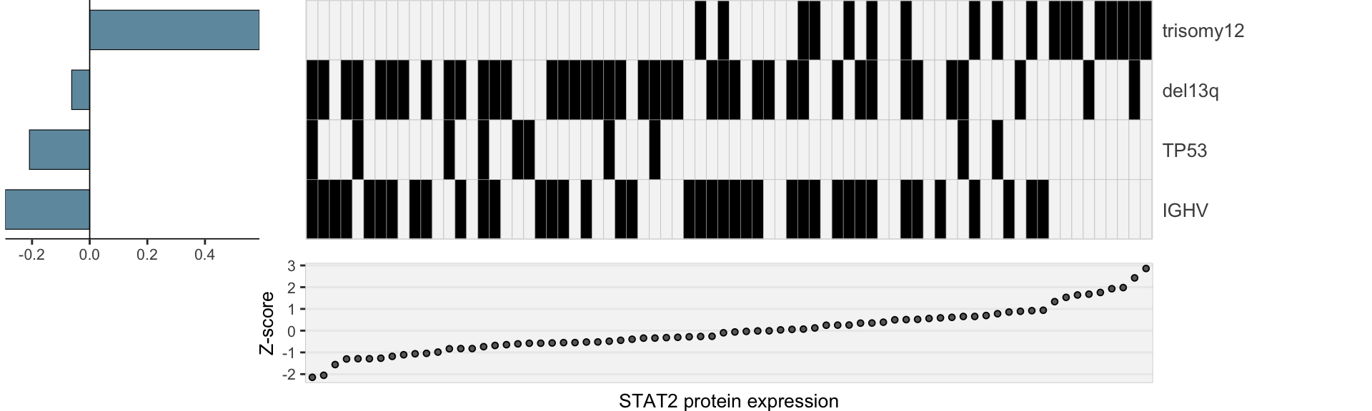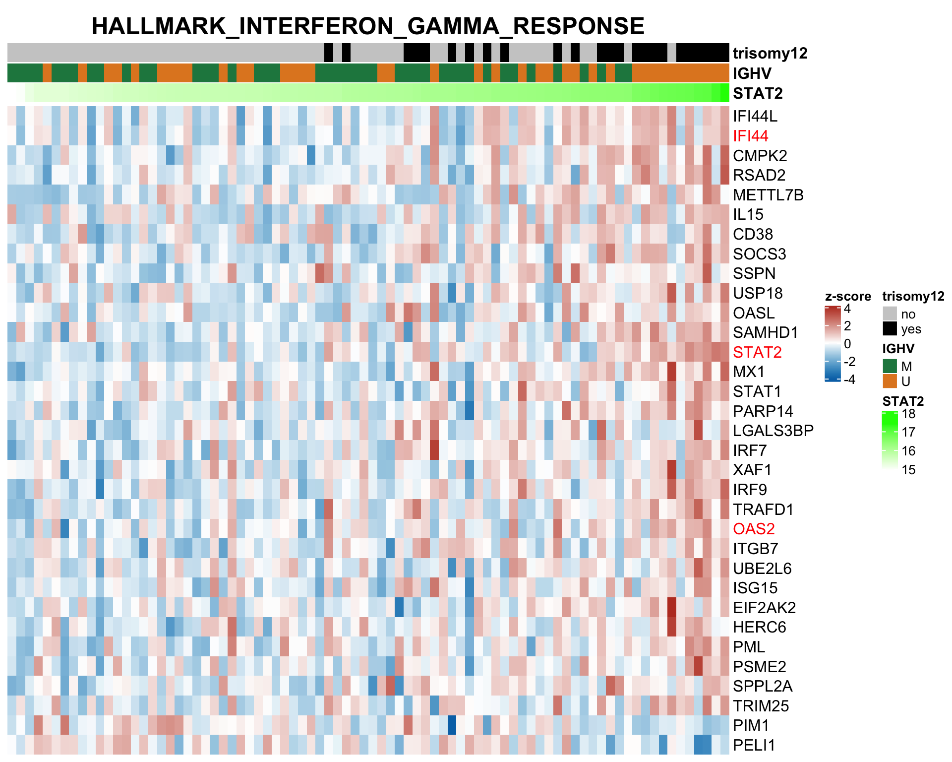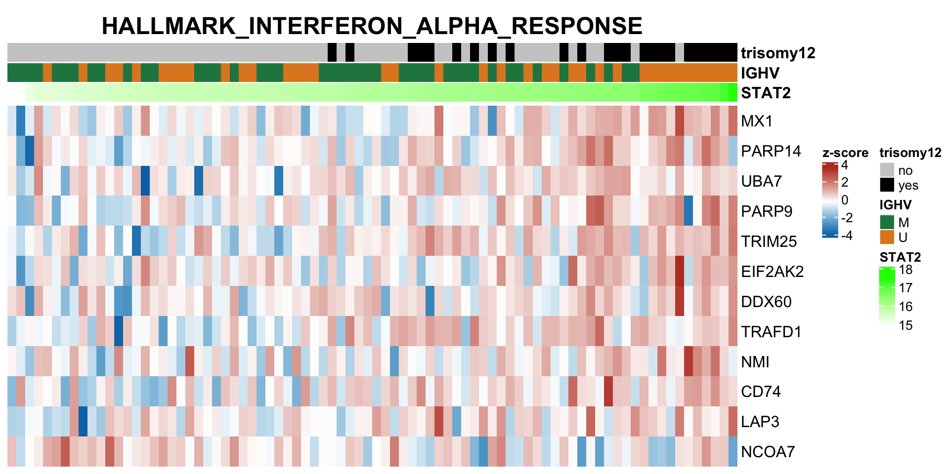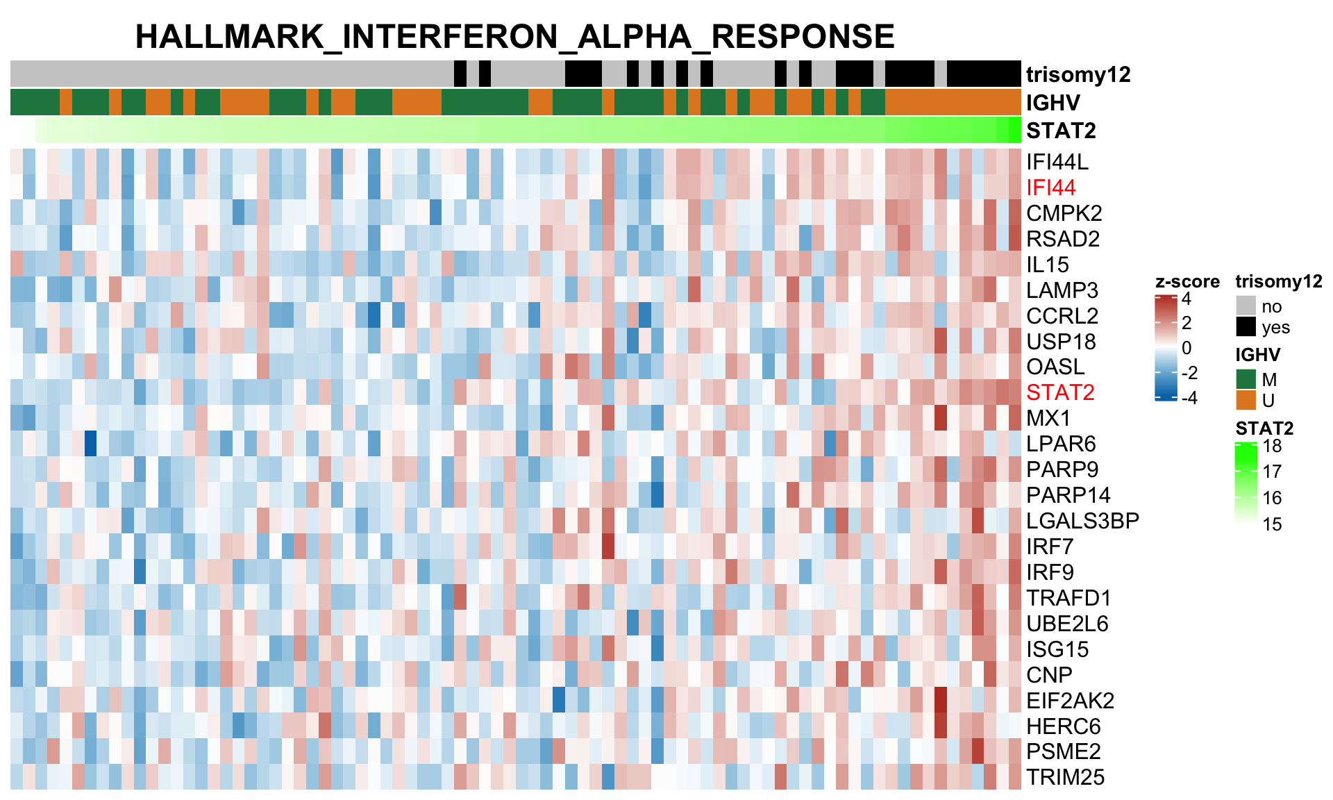colAnno <- tibble(id = names(yVec), STAT2= yVec, IGHV = ighv, trisomy12 = tri12) %>%