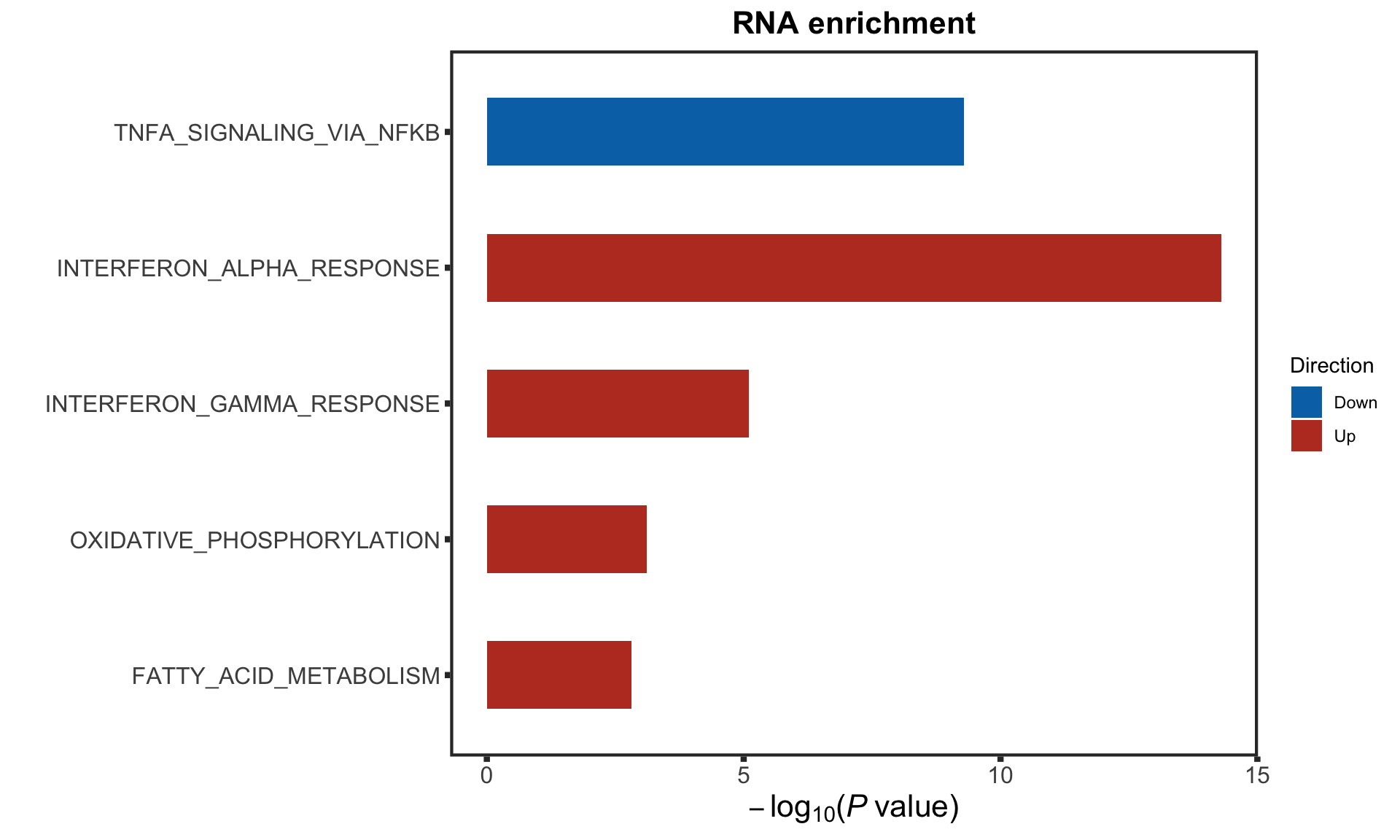 removePrefix = "HALLMARK_", pCut = 0.05, ifFDR = TRUE, plotTitle = "RNA enrichment")