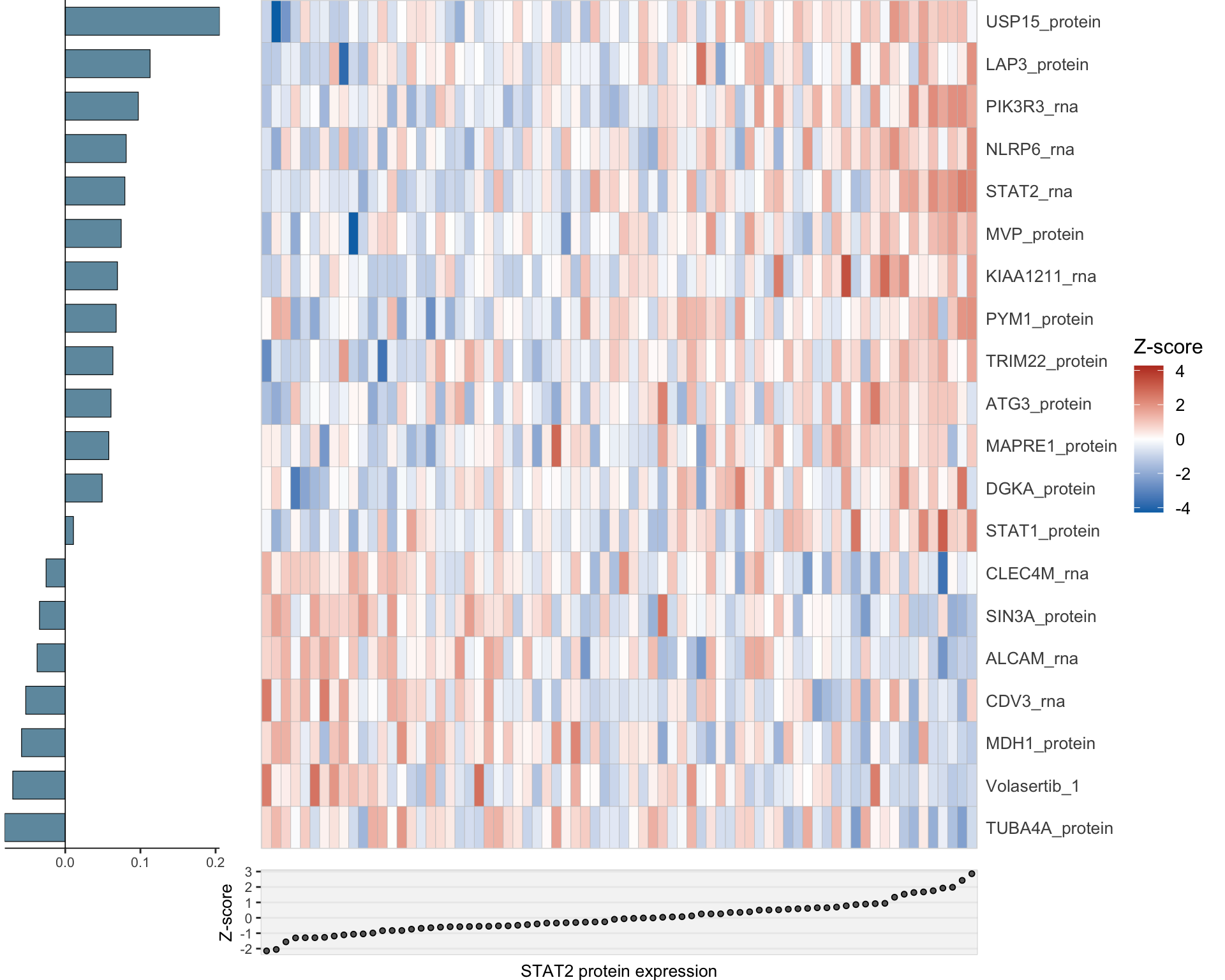 Correlation between selected genes and STAT2 protein expression