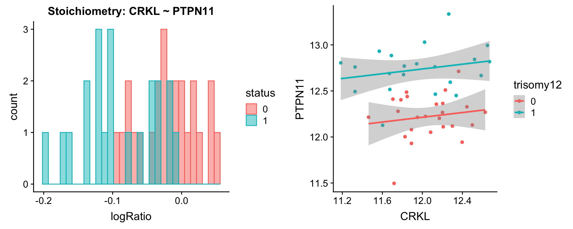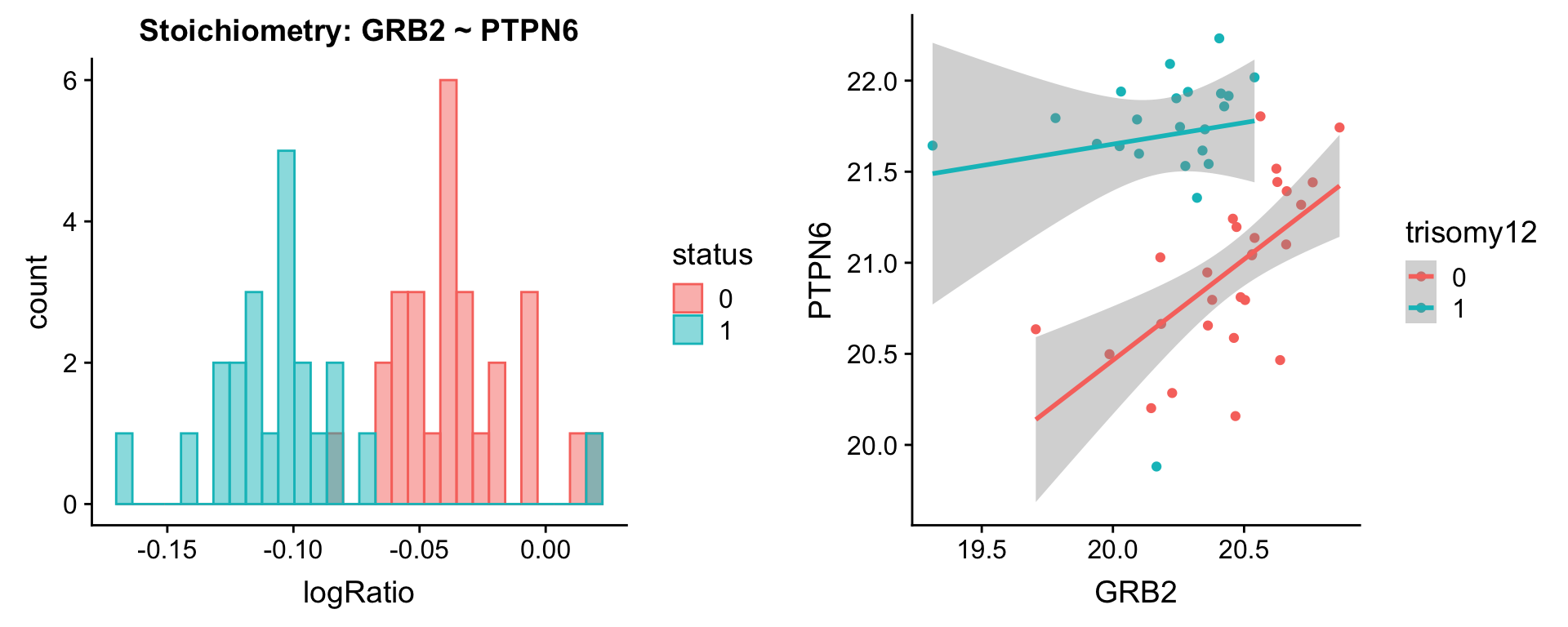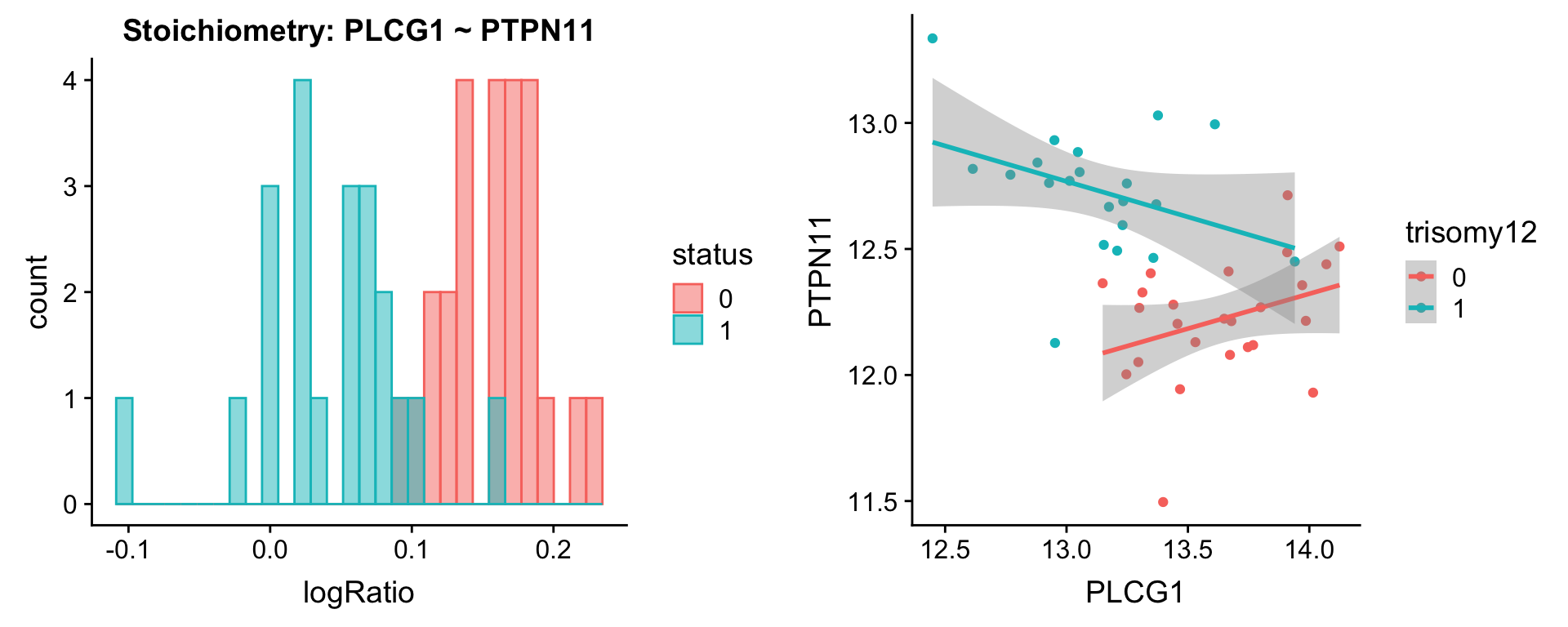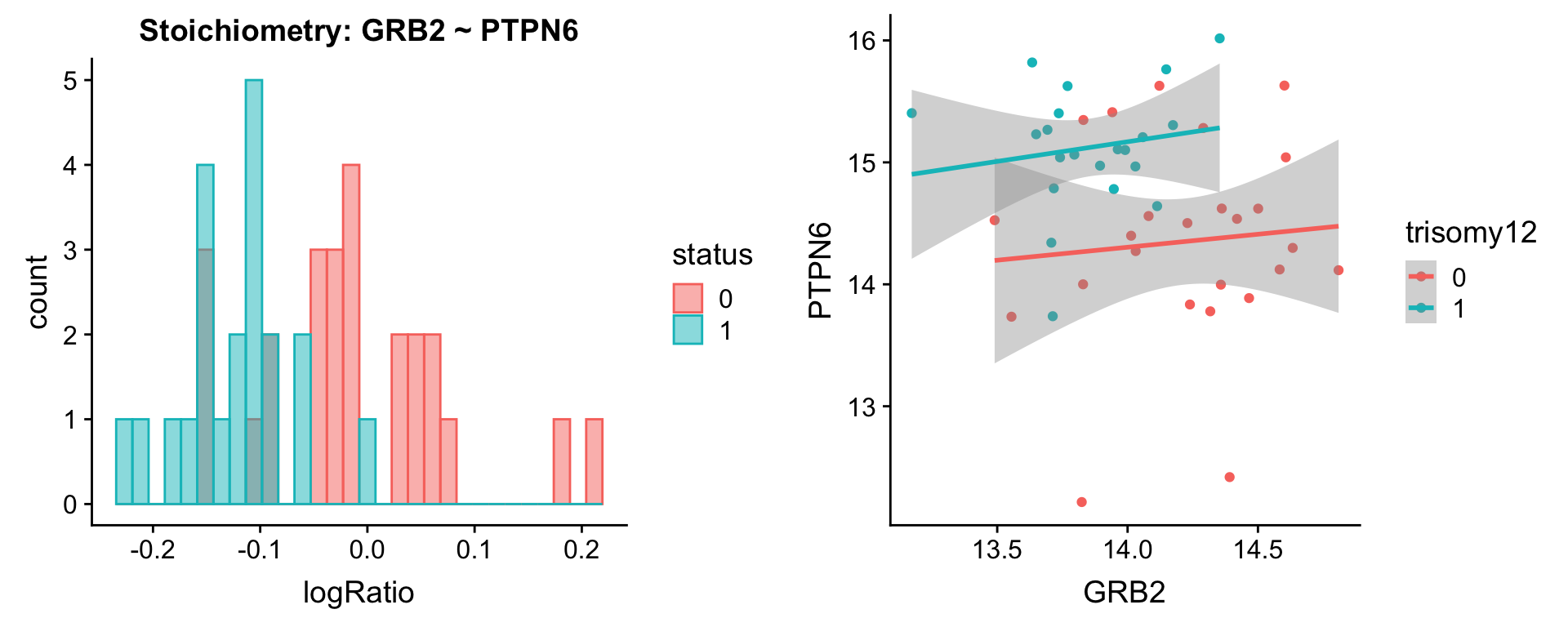 mutate(onChr12 = ifelse(rowData(protCLL[match(name, rowData(protCLL)$hgnc_symbol),])$chromosome_name %in% "12", "chr12","otherChr")) %>%