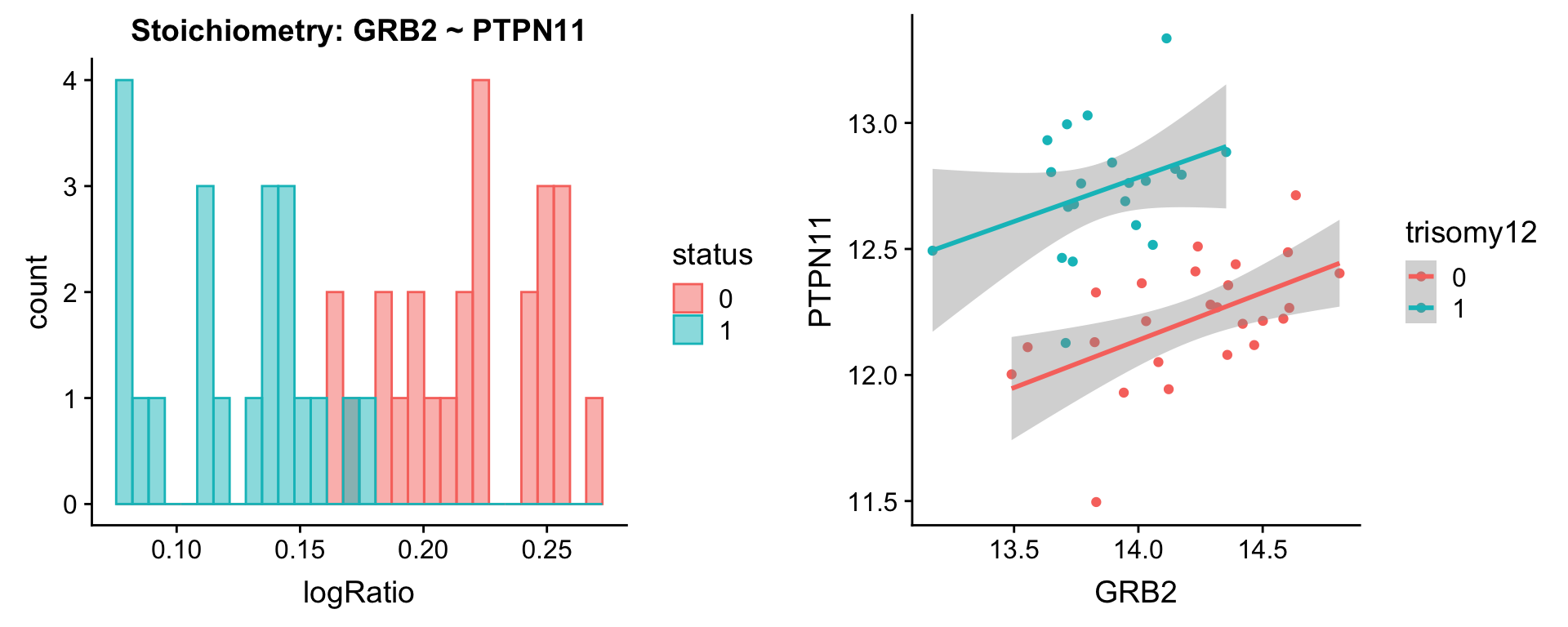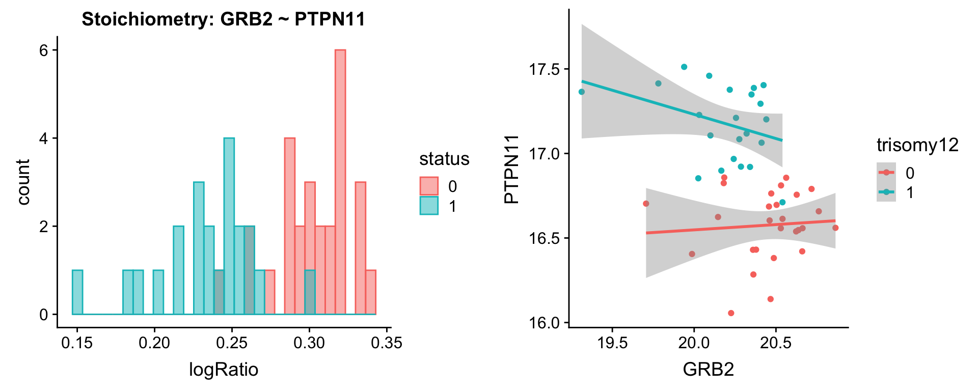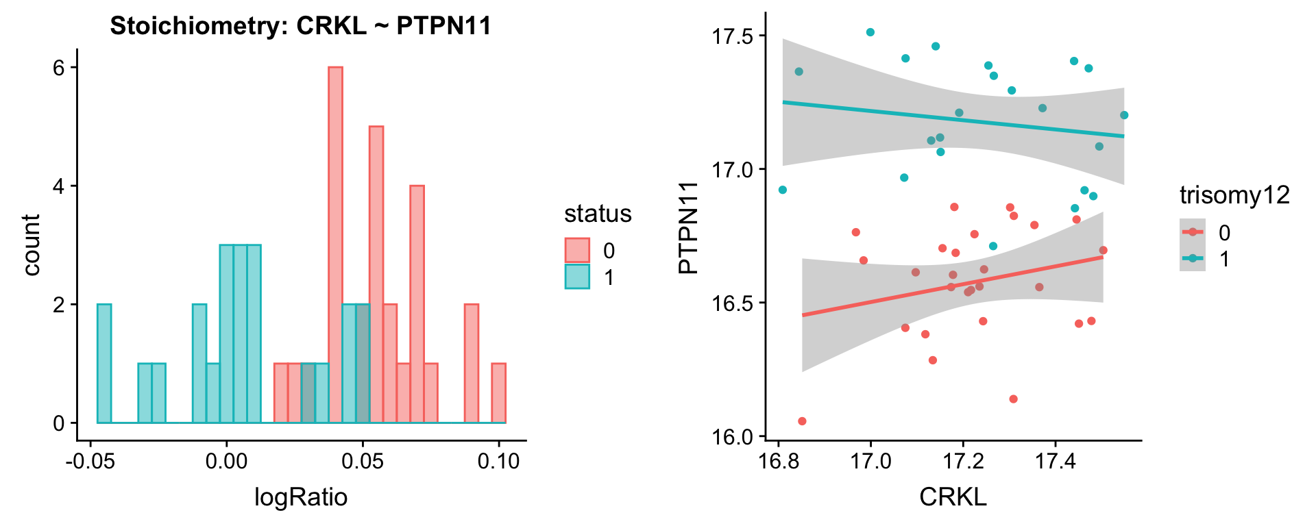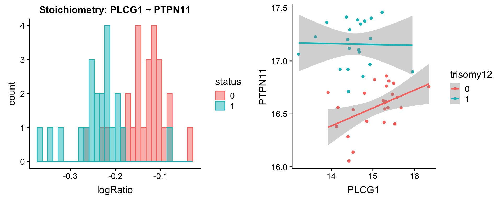 mutate(onChr12 = ifelse(rowData(protCLL[match(name, rowData(protCLL)$hgnc_symbol),])$chromosome_name %in% "12", "chr12","otherChr")) %>%