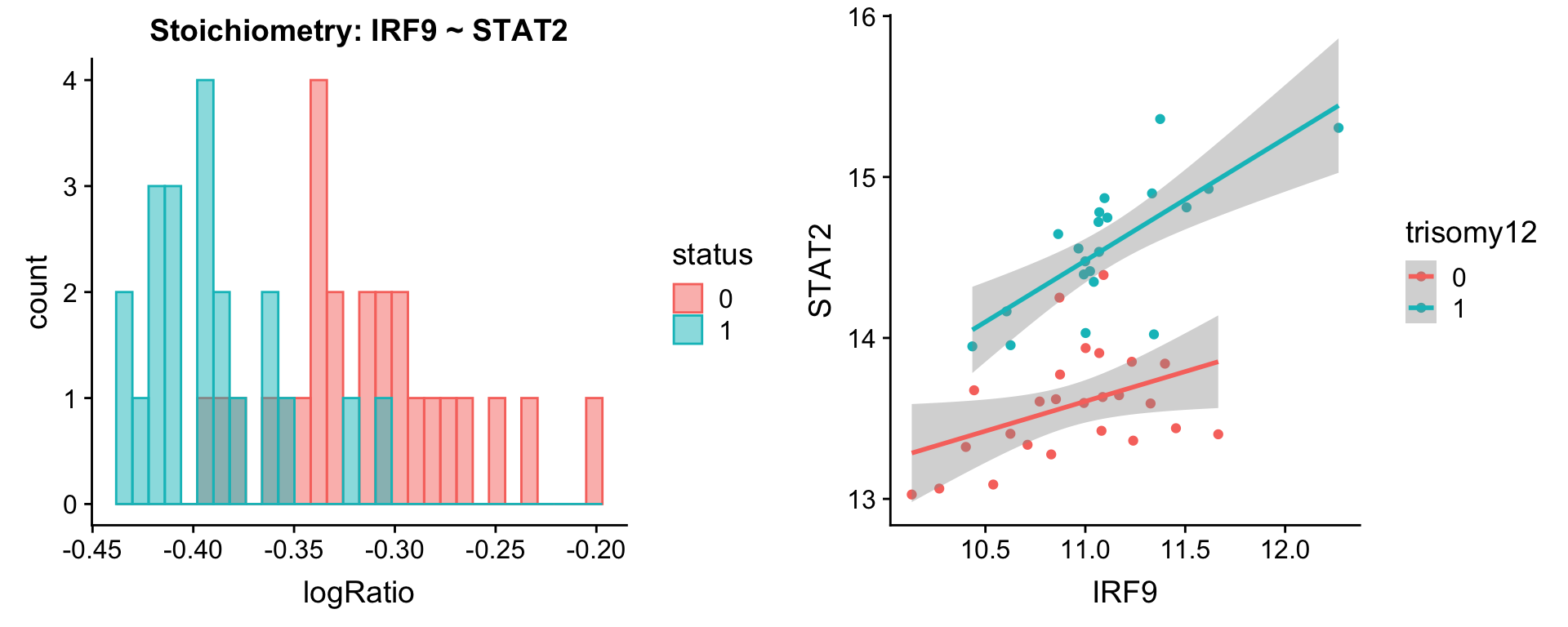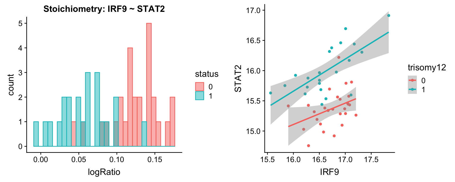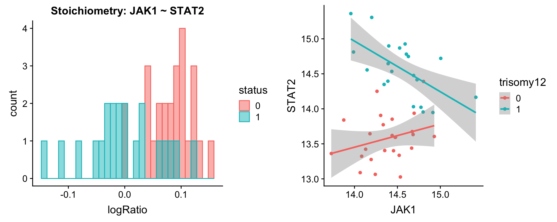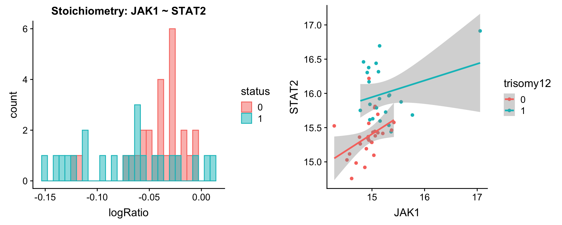 mutate(onChr12 = ifelse(rowData(protCLL[match(name, rowData(protCLL)$hgnc_symbol),])$chromosome_name %in% "12", "chr12","otherChr")) %>%