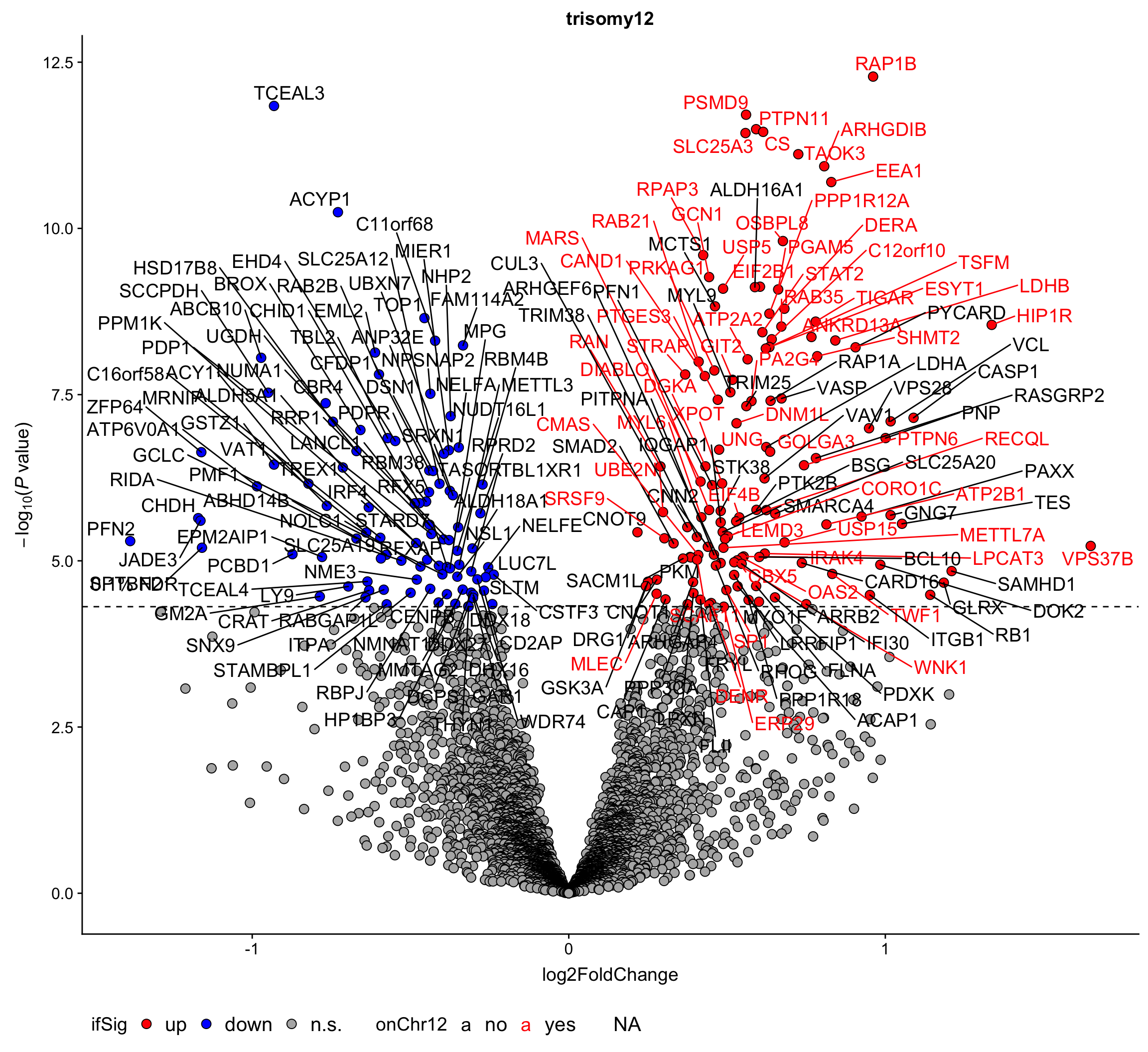 Labels colored by red indicates the gene is on chromosome 19
