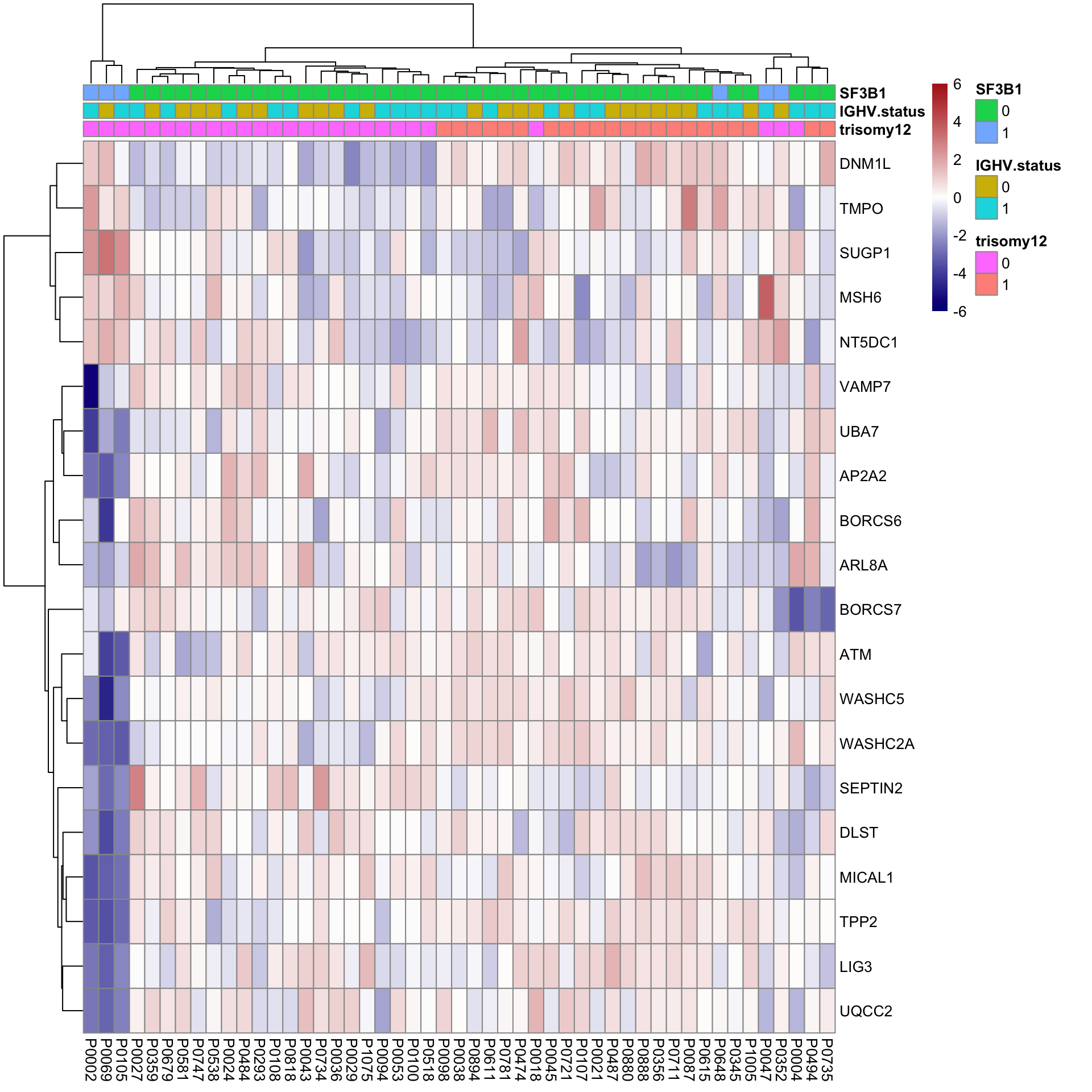 [6] "DDX3X" "EGR2" "NOTCH1" "SF3B1" "TP53"