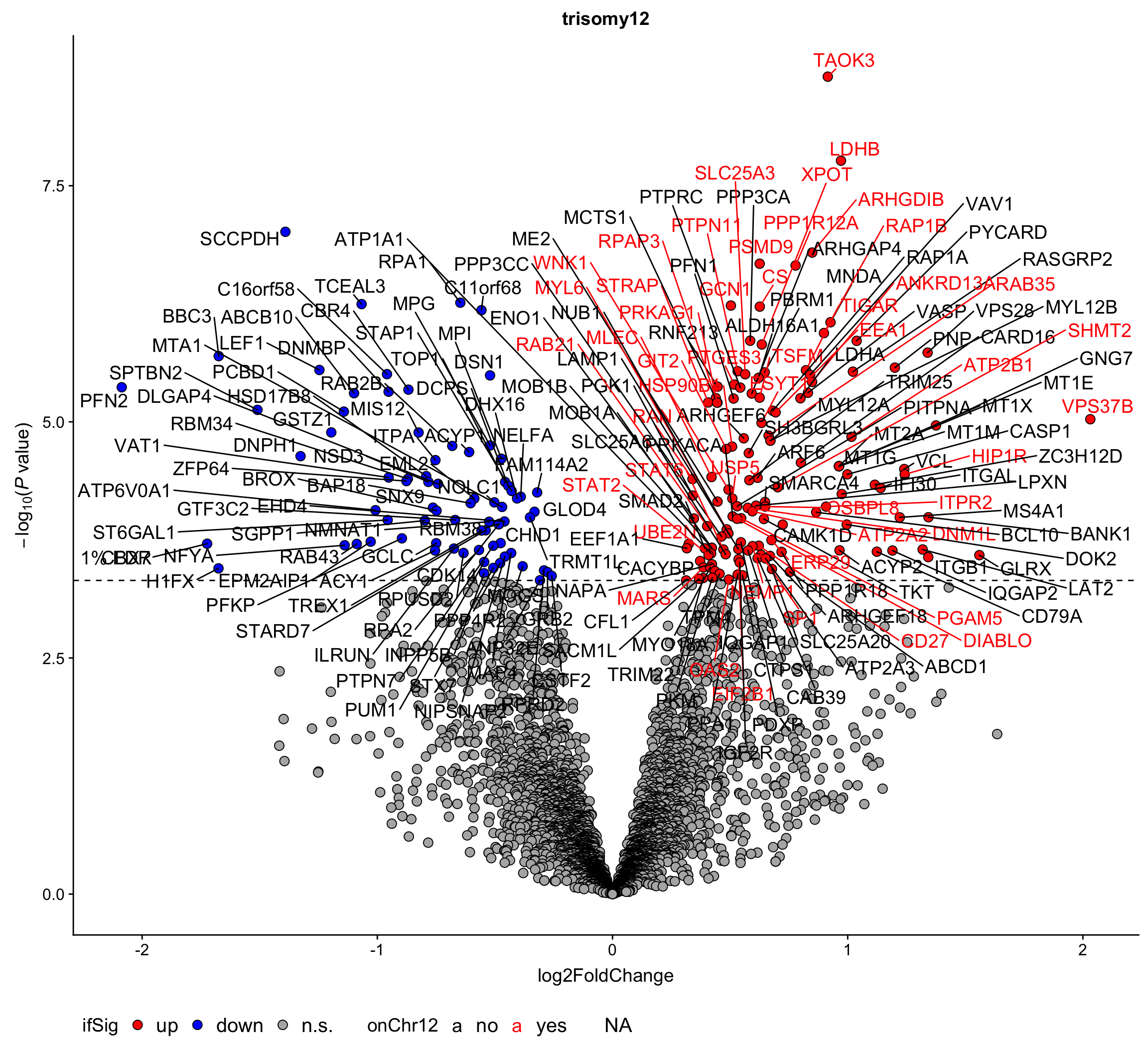 Labels colored by red indicates the gene is on chromosome 19