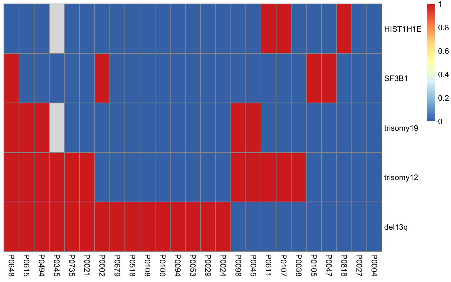 [1] "del13q" "trisomy12" "trisomy19" "HIST1H1E" "SF3B1"