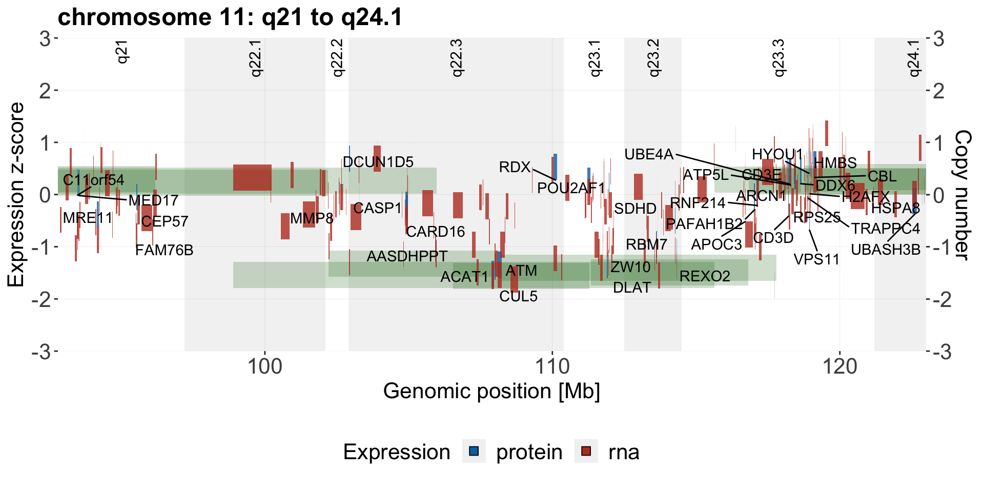 g <- plotExprCNV(patList,"chr11",allBand, allLine.wes, allProtTab, allRnaTab,