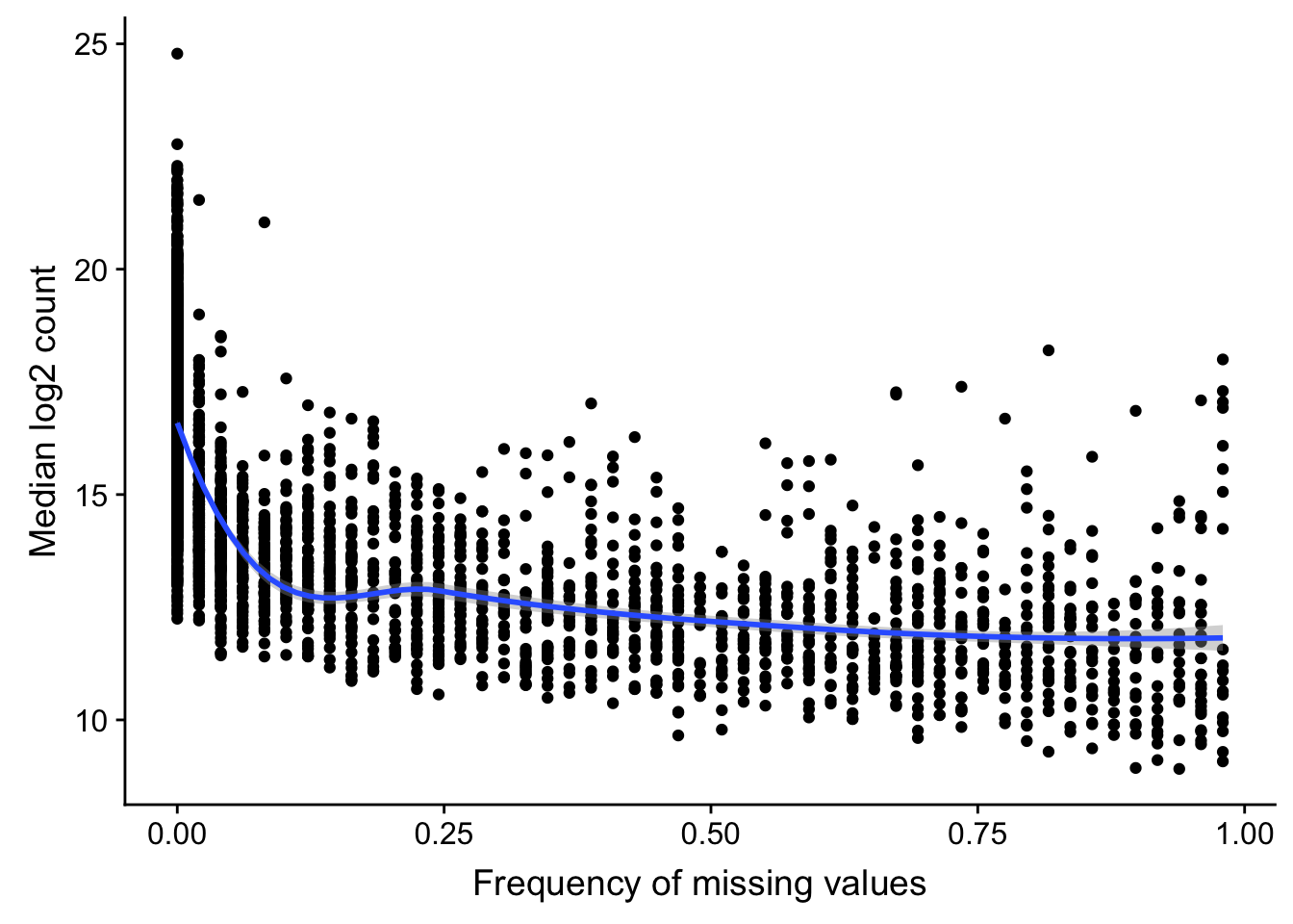 Missing value pattern after normalization and filtering
