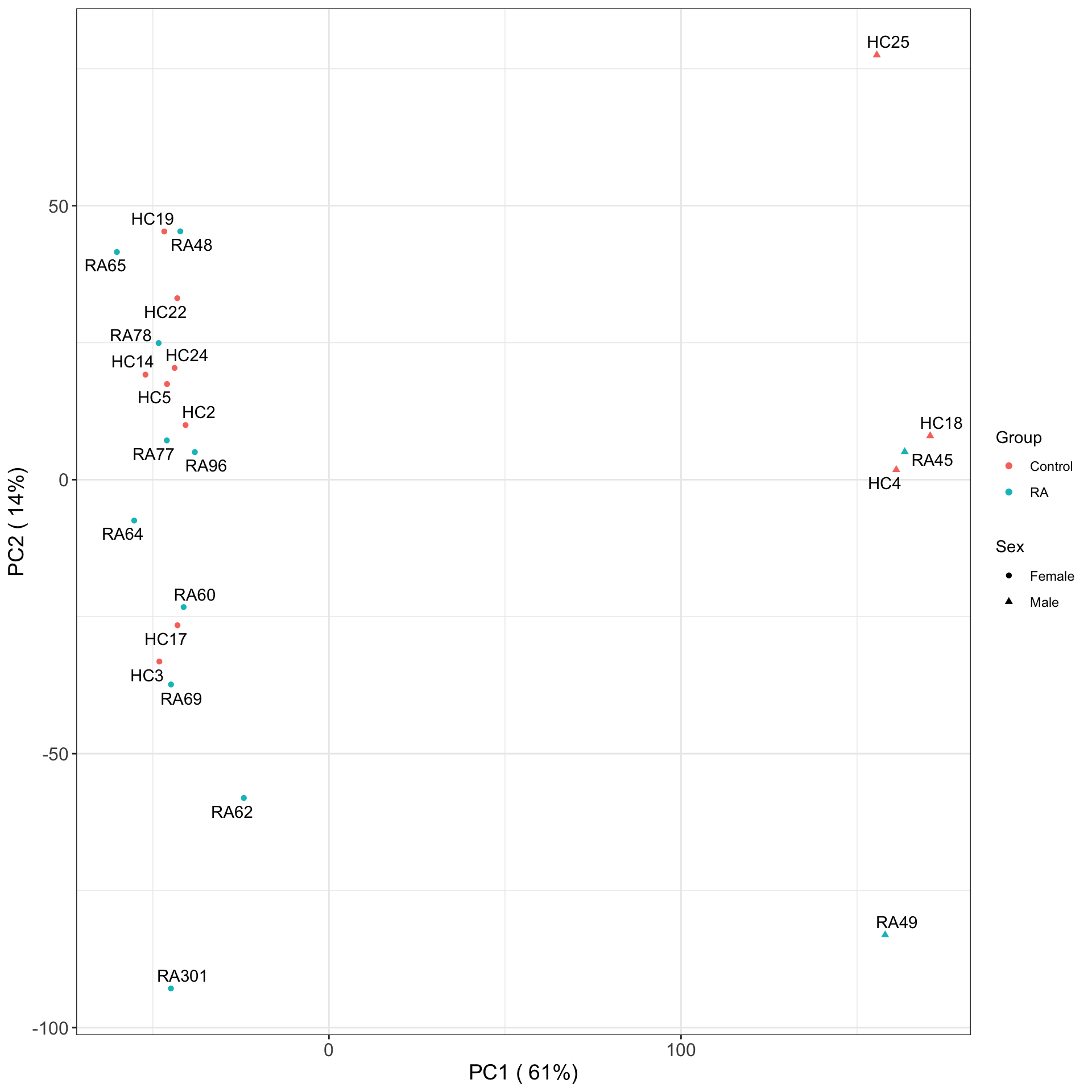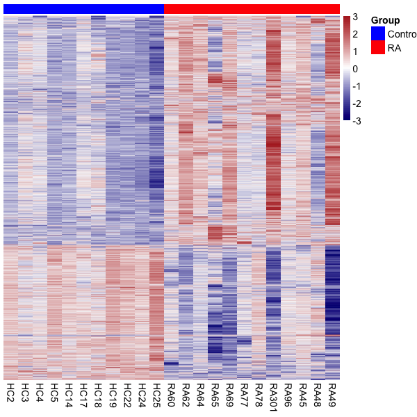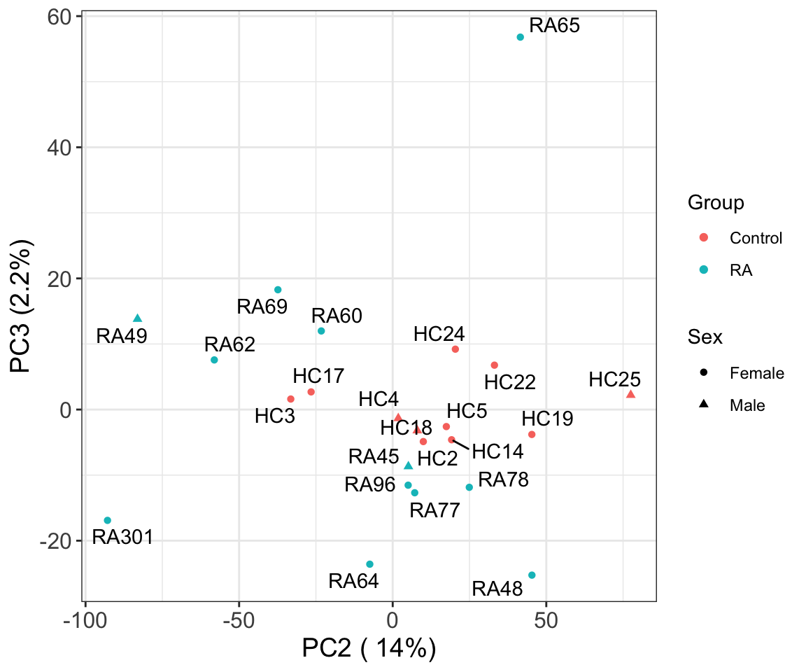 The first three principal components can separate RA with control samples, to some degree.