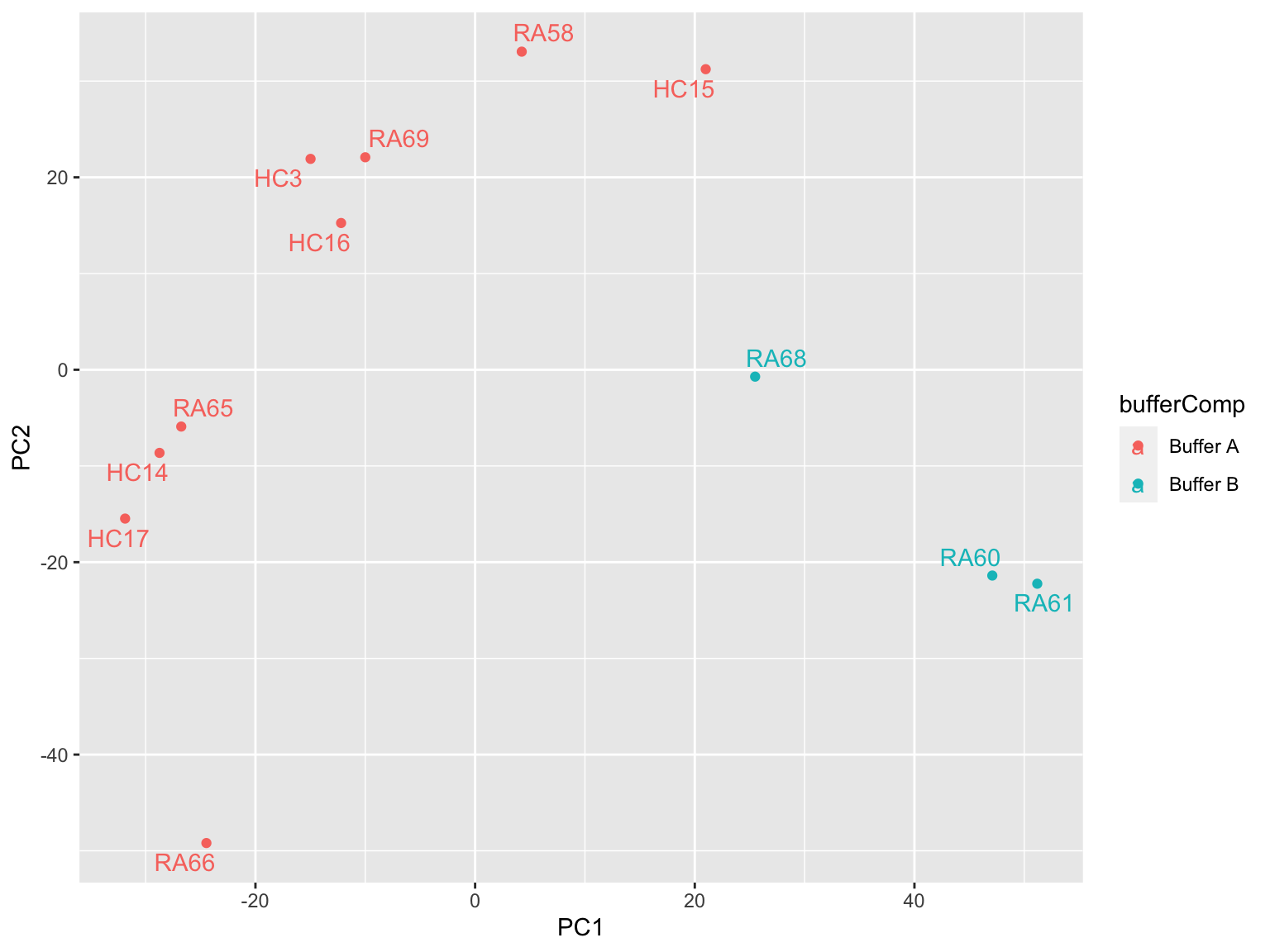 pcRes <- prcomp(t(metaMat), scale. = FALSE, center = TRUE)