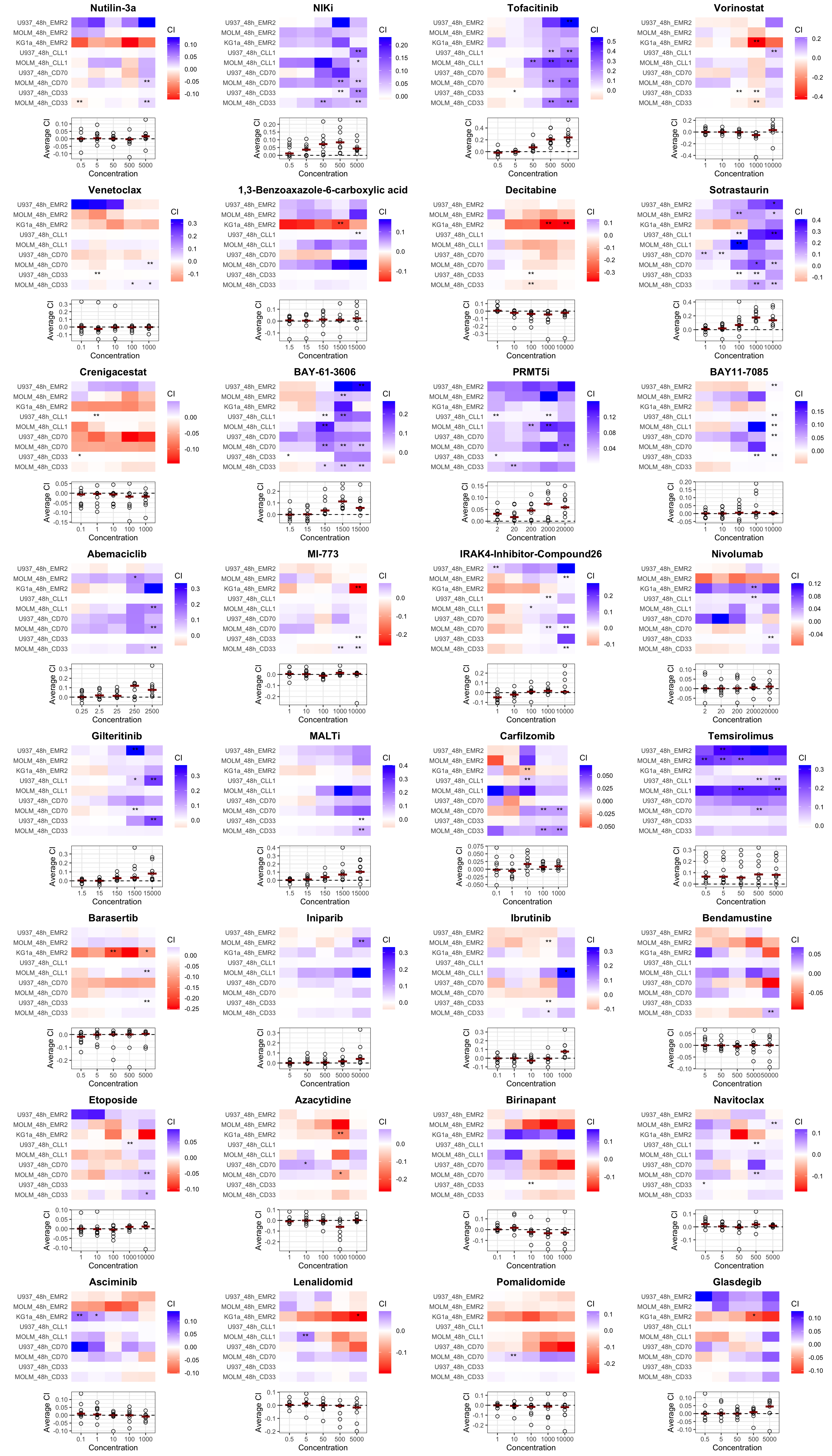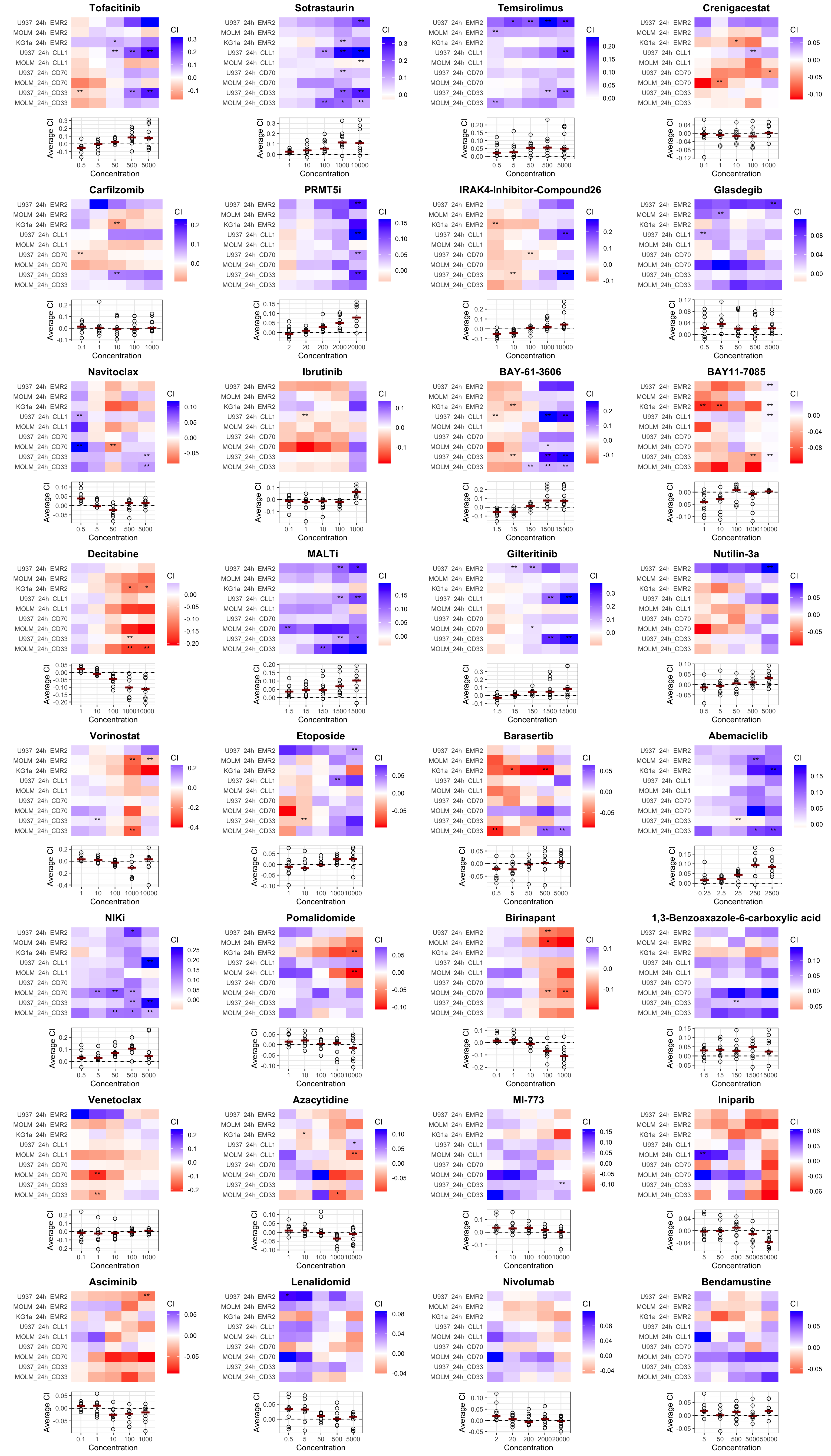 Only drugs with median CI < 0 (synergistic or additive) are shown