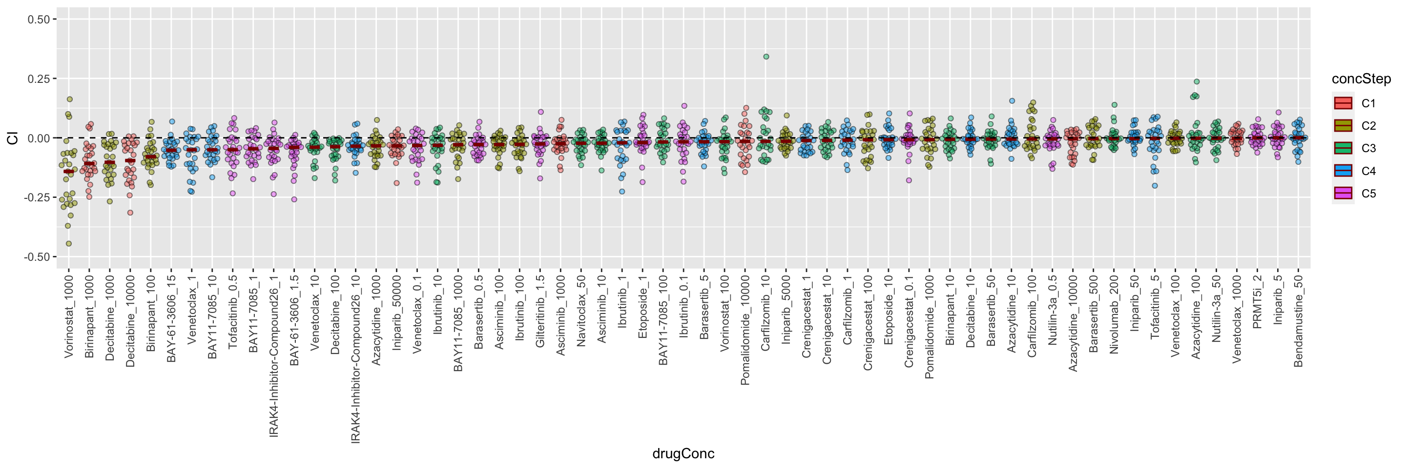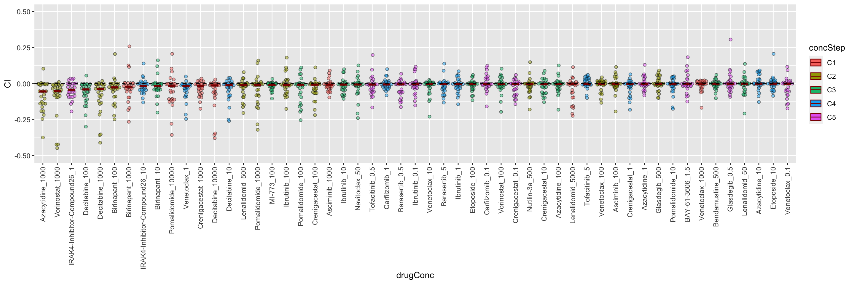 group_by(drugConc) %>% mutate(medVal = median(CI)) %>% arrange(medVal) %>%